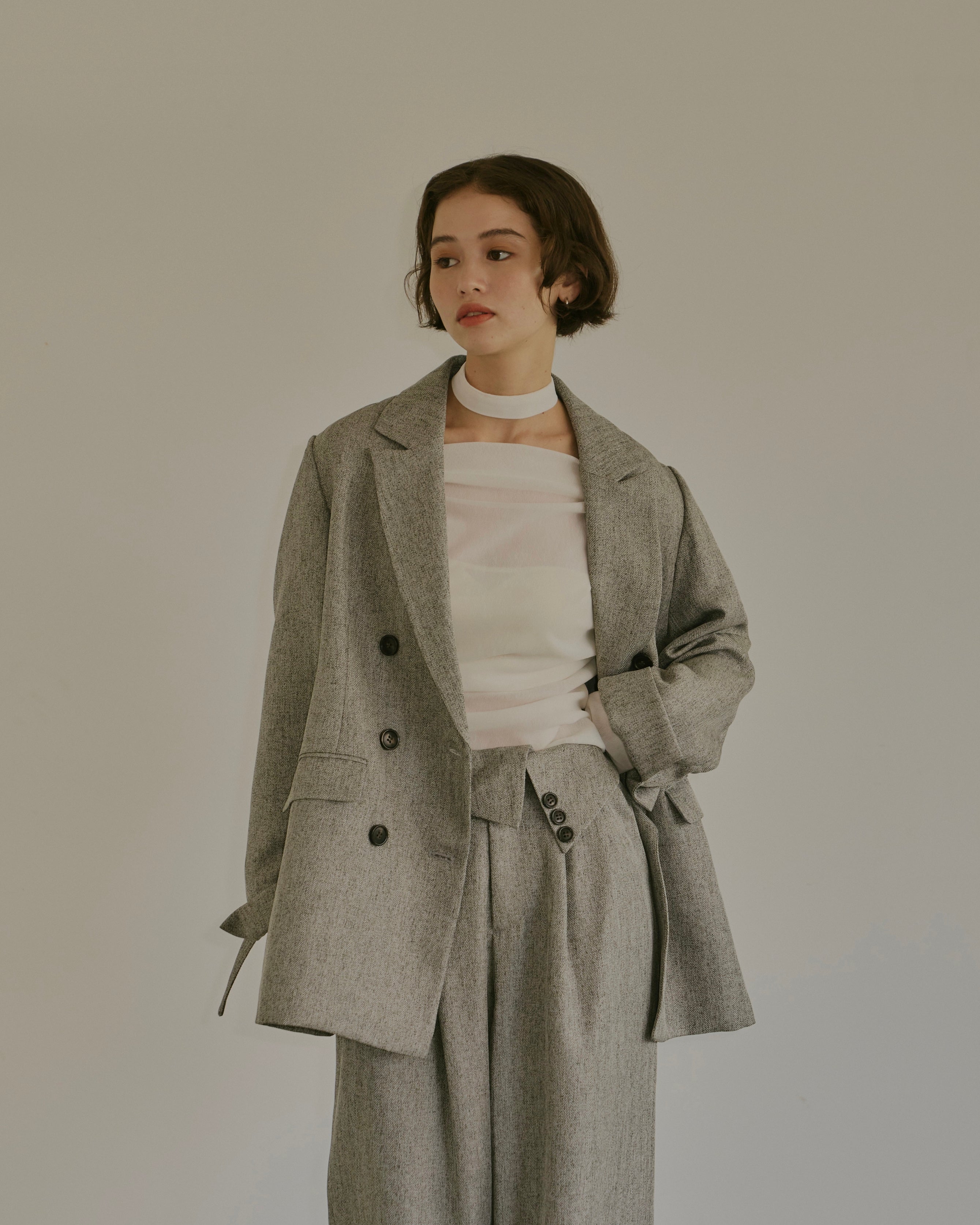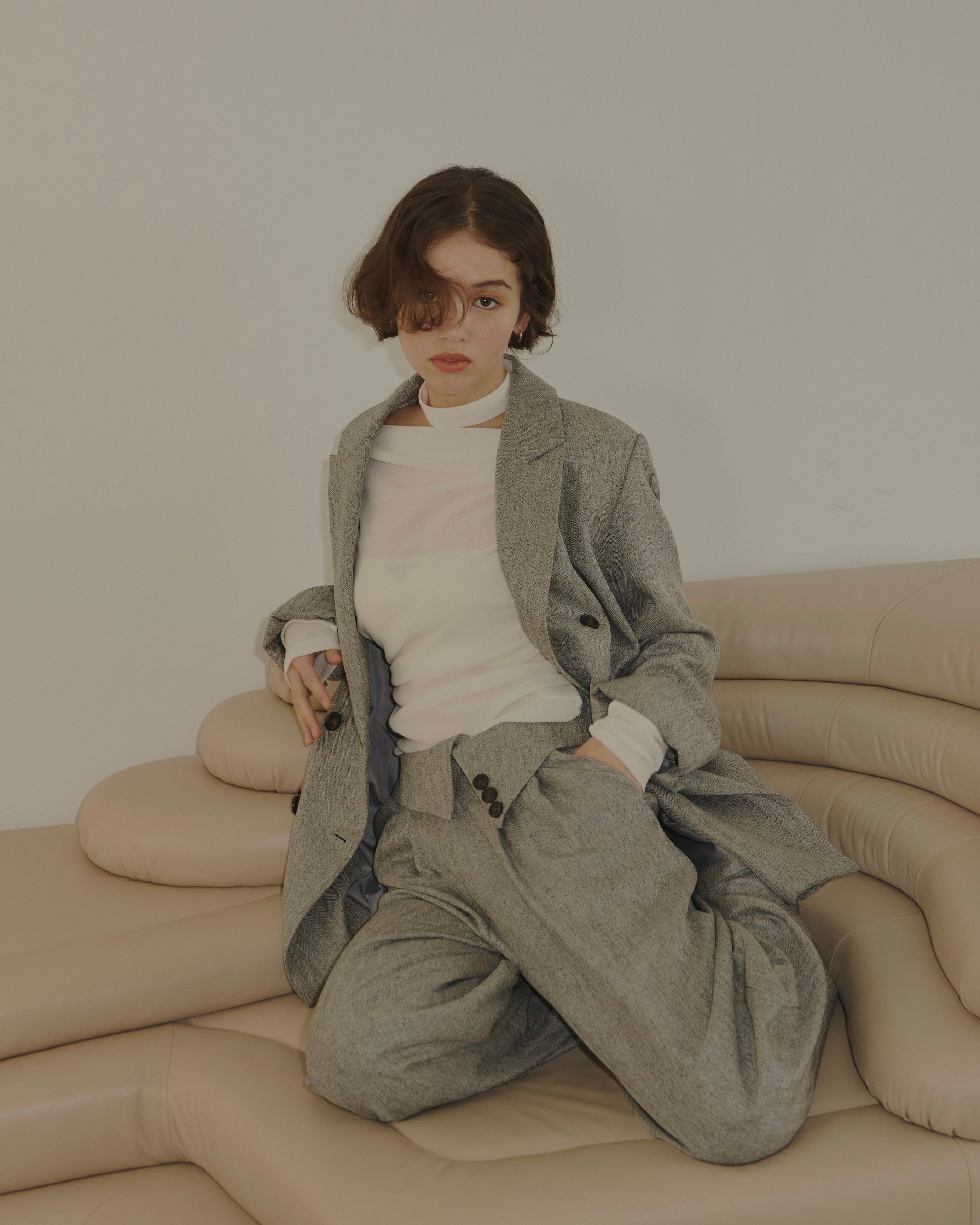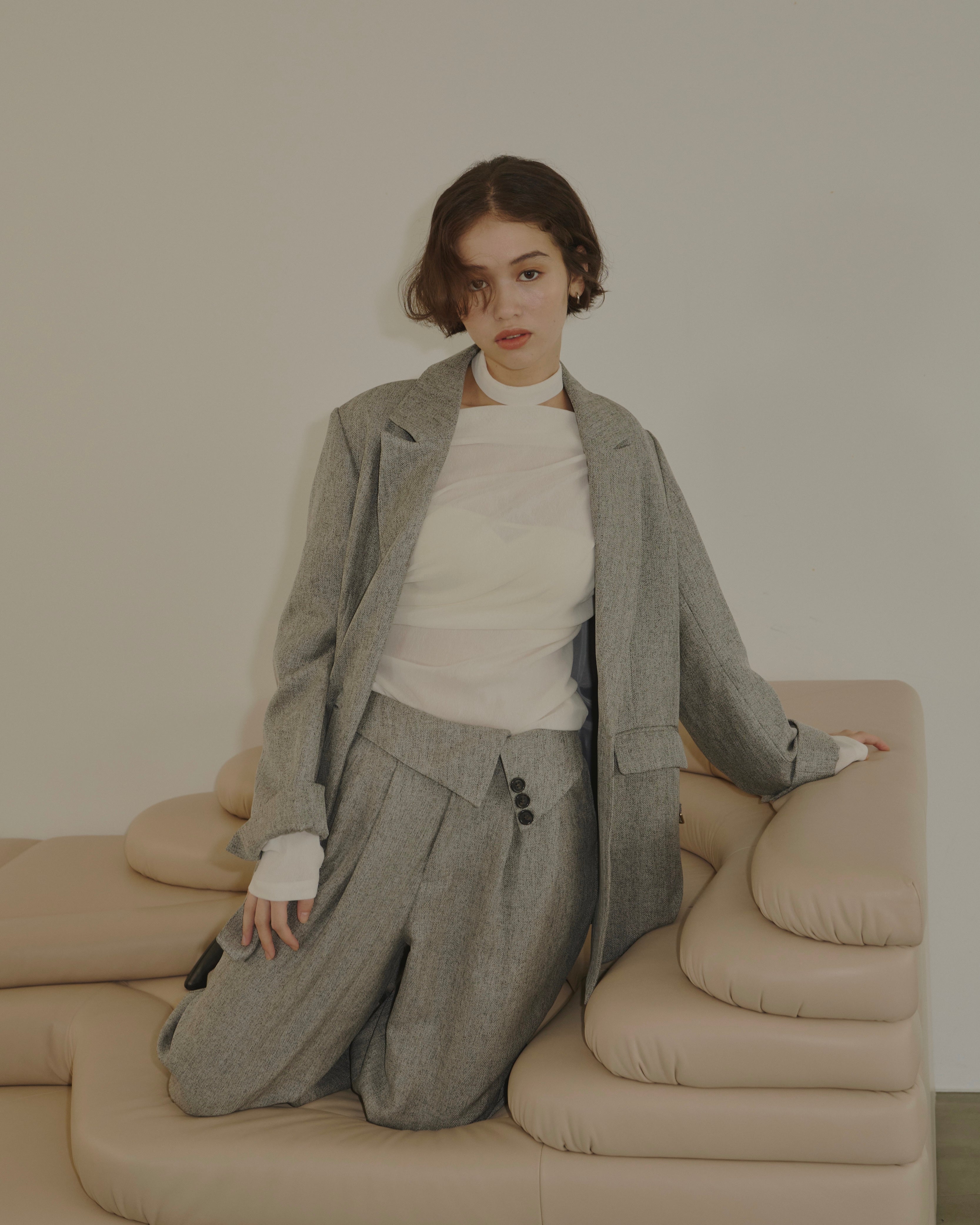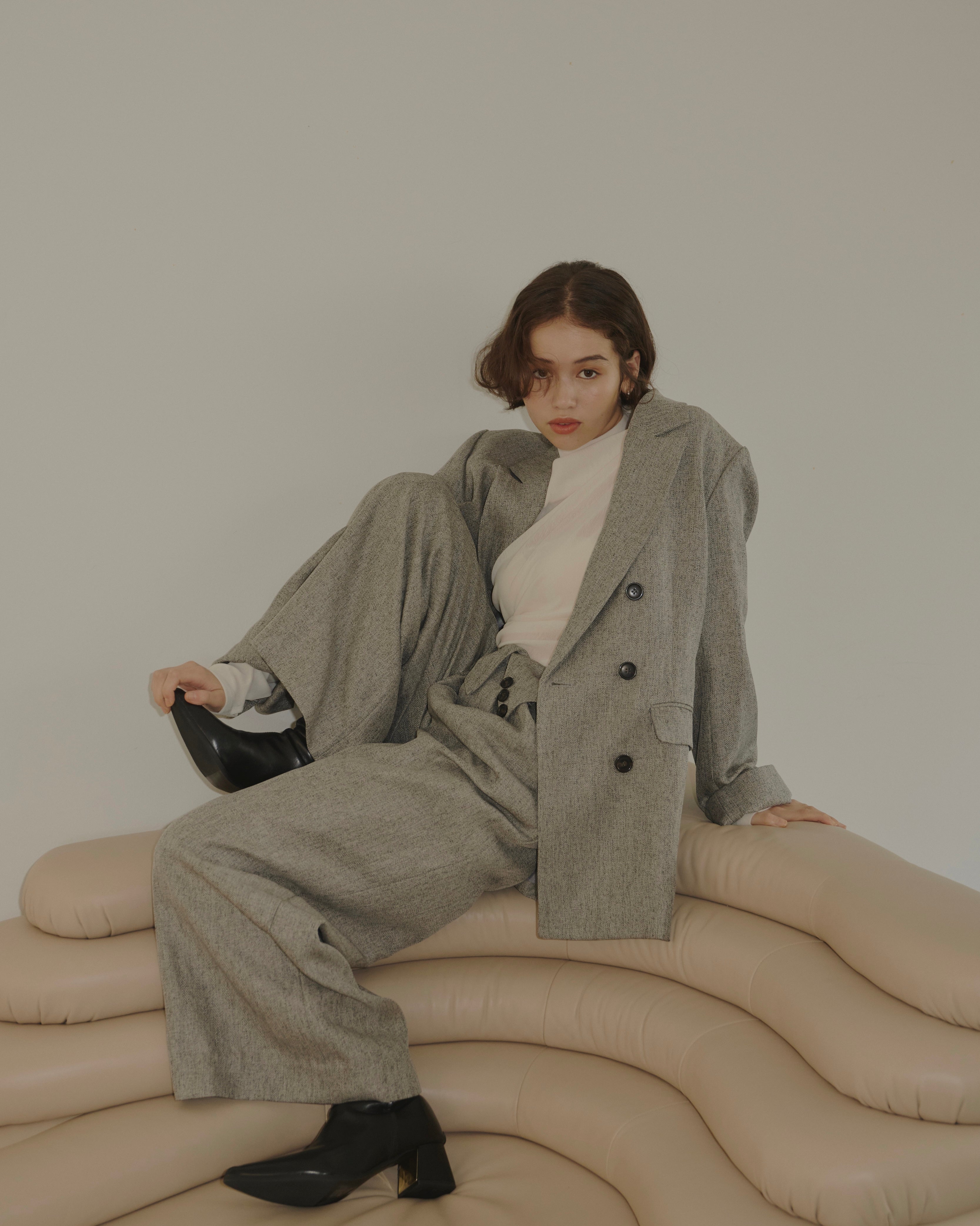 ヘリンボーン柄と単色の2展開で、様々なコーディネートに対応。