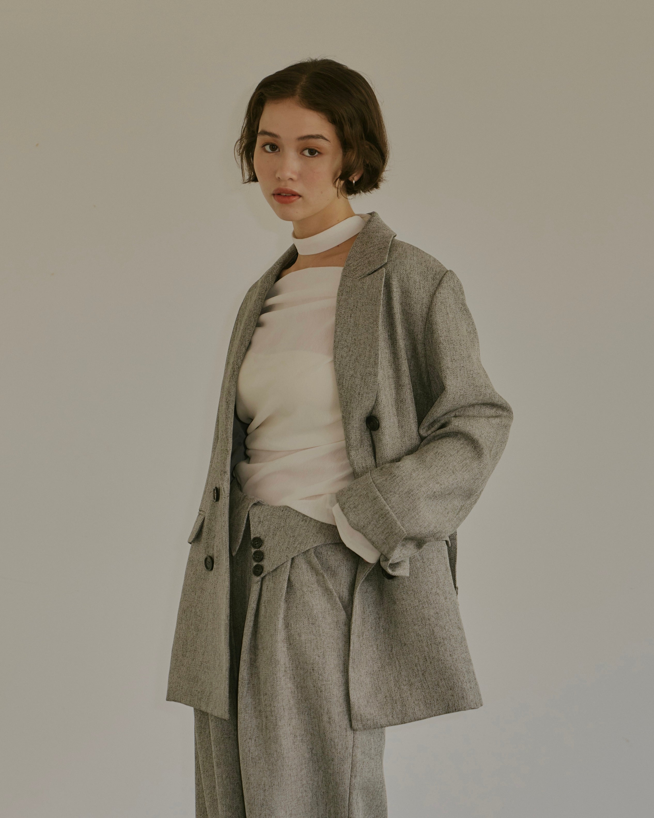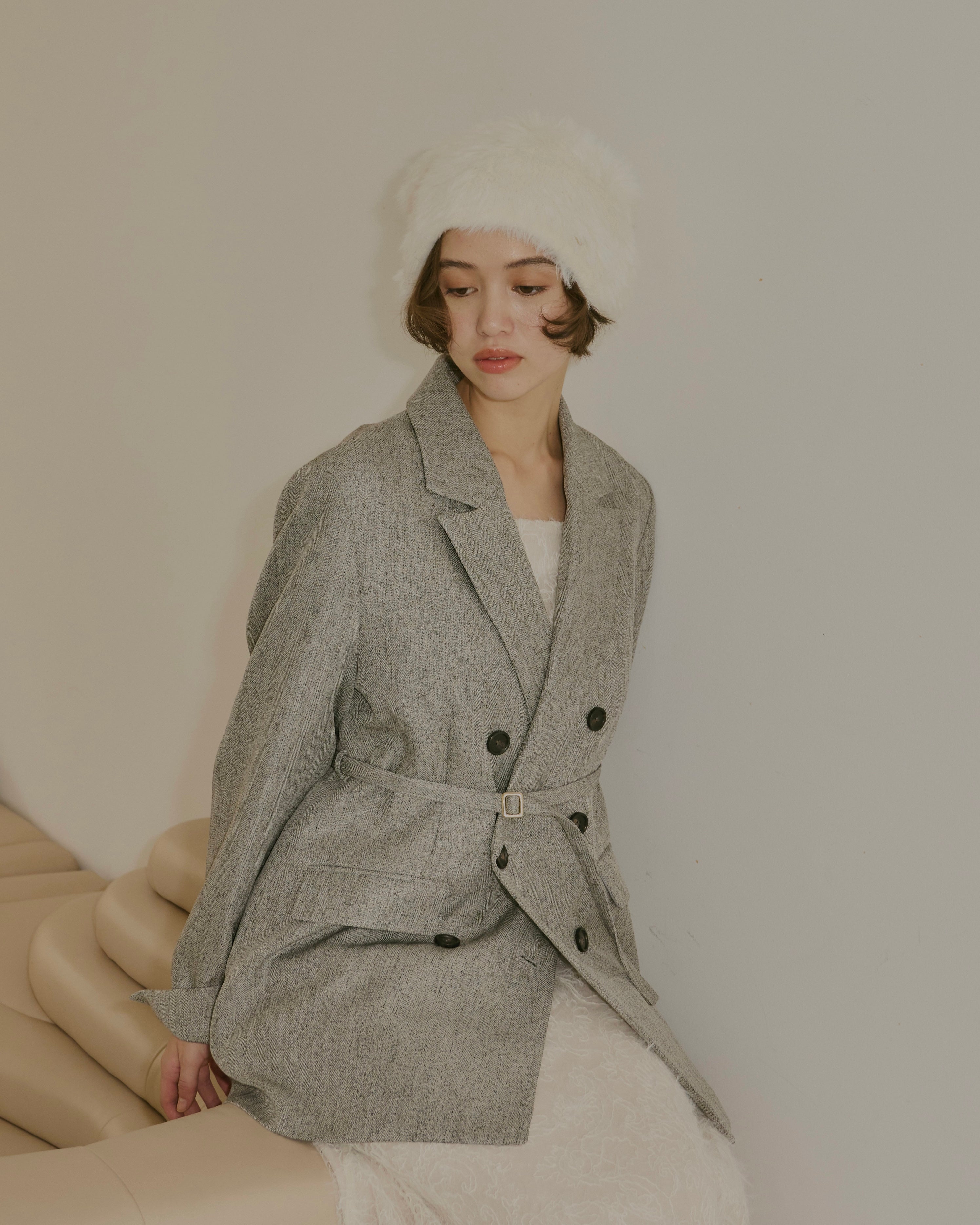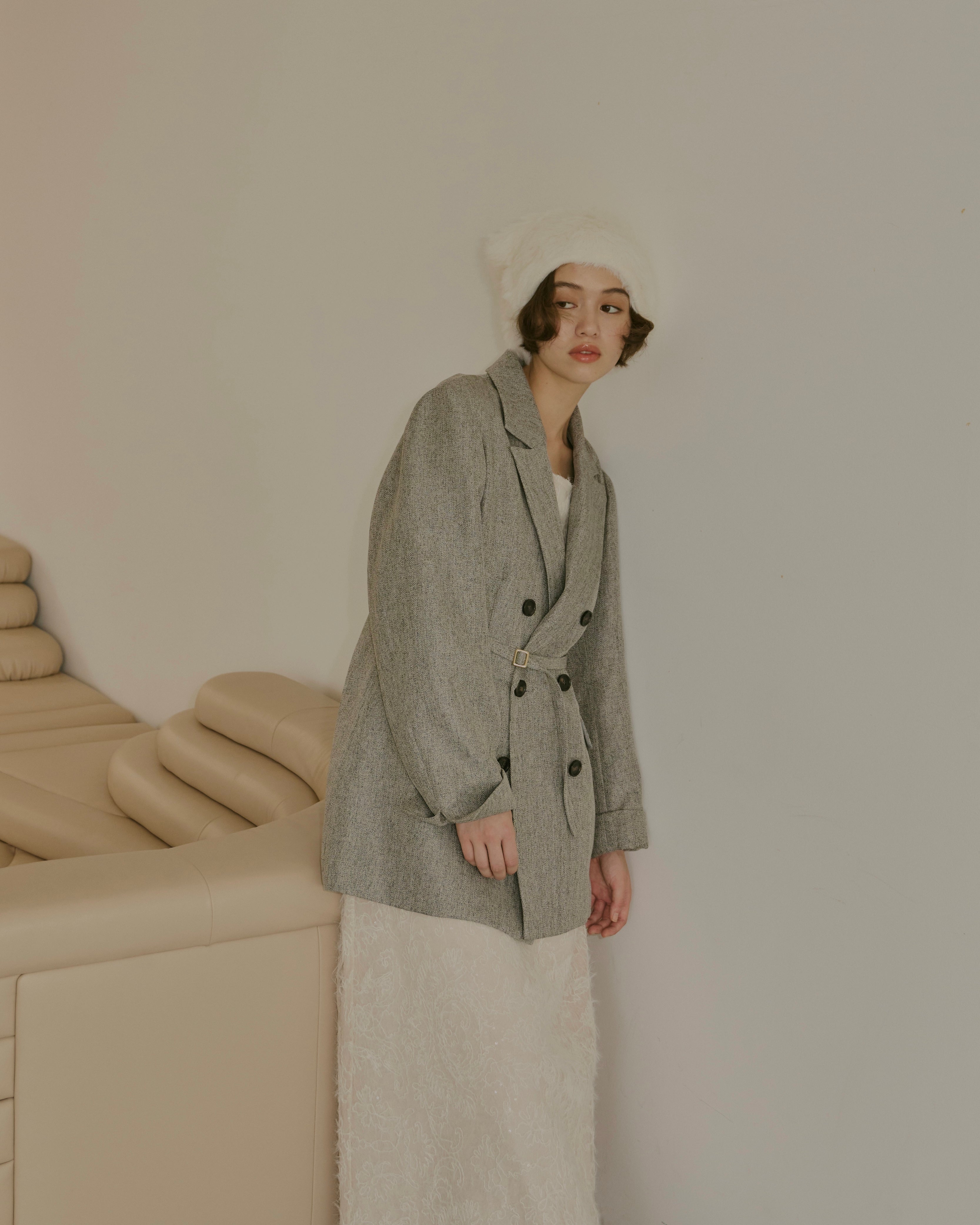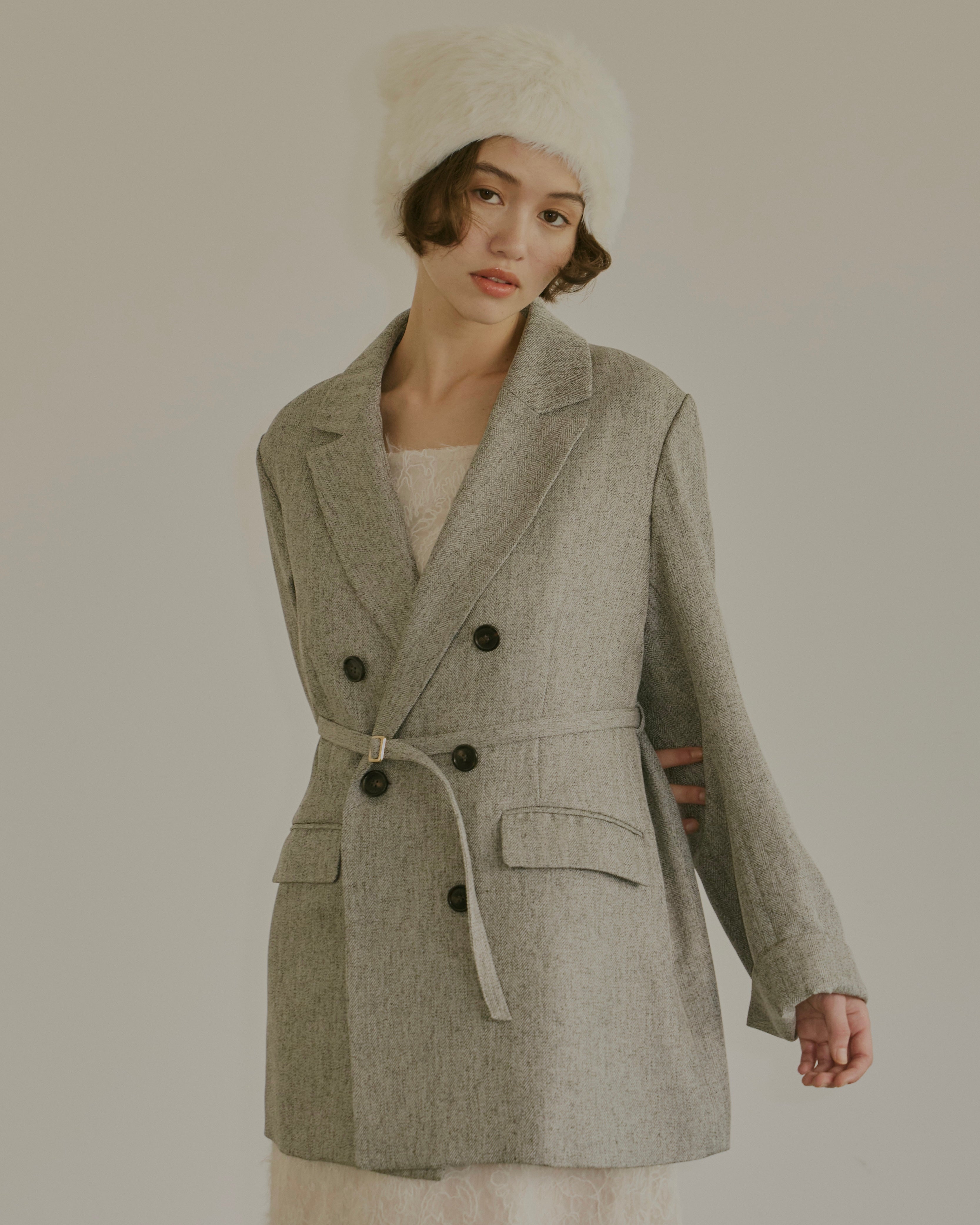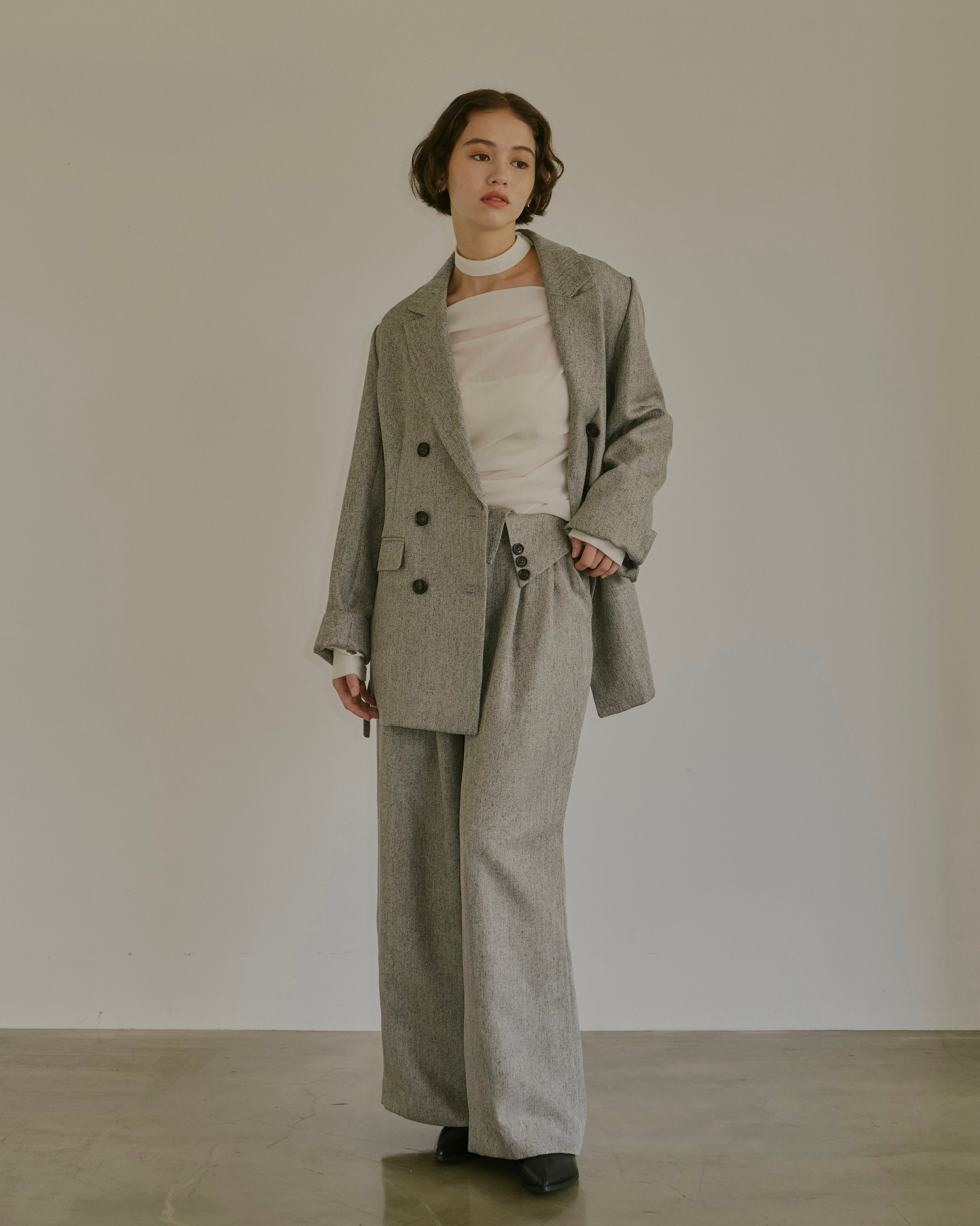 ヘリンボーン柄と単色の2展開で、様々なコーディネートに対応。