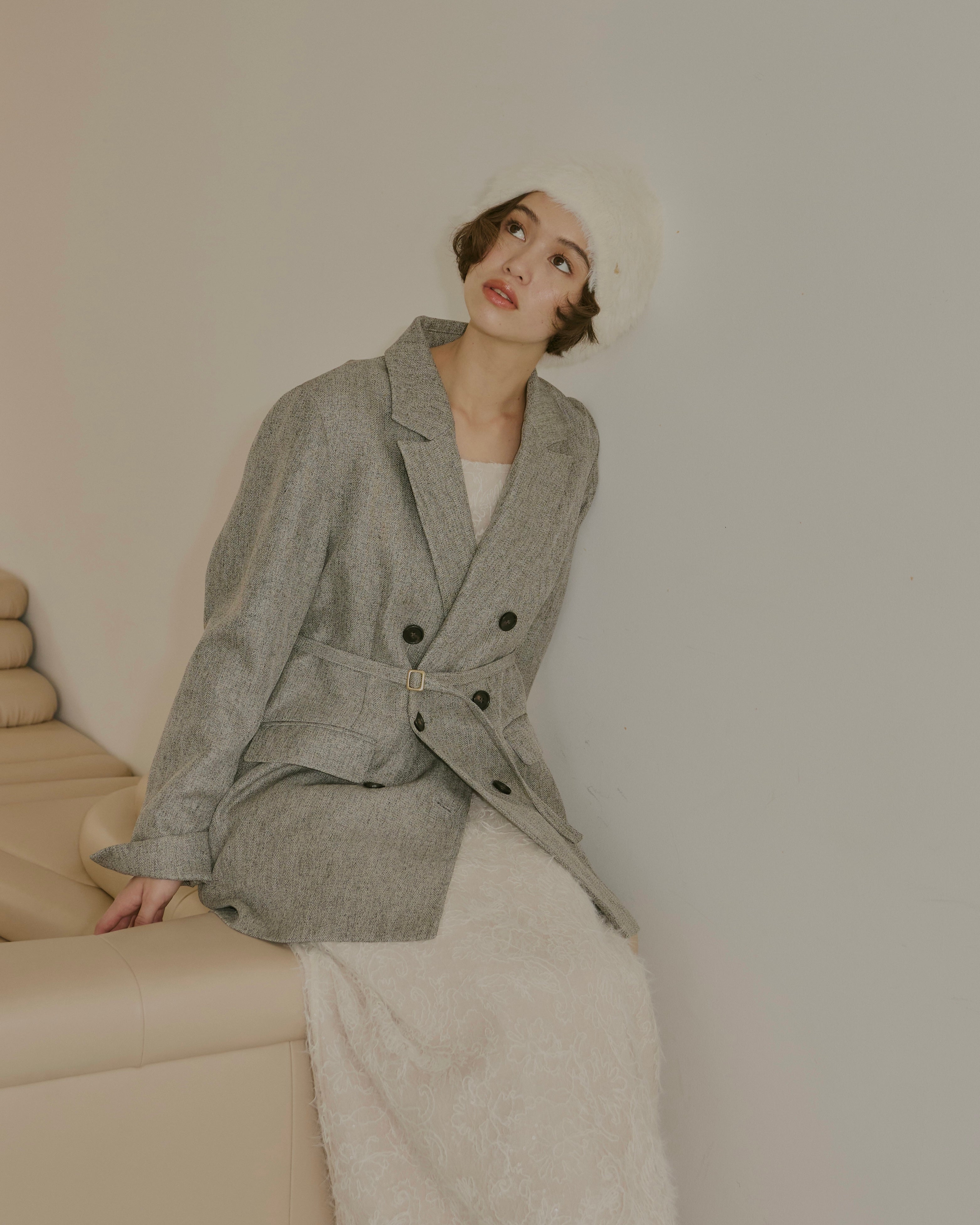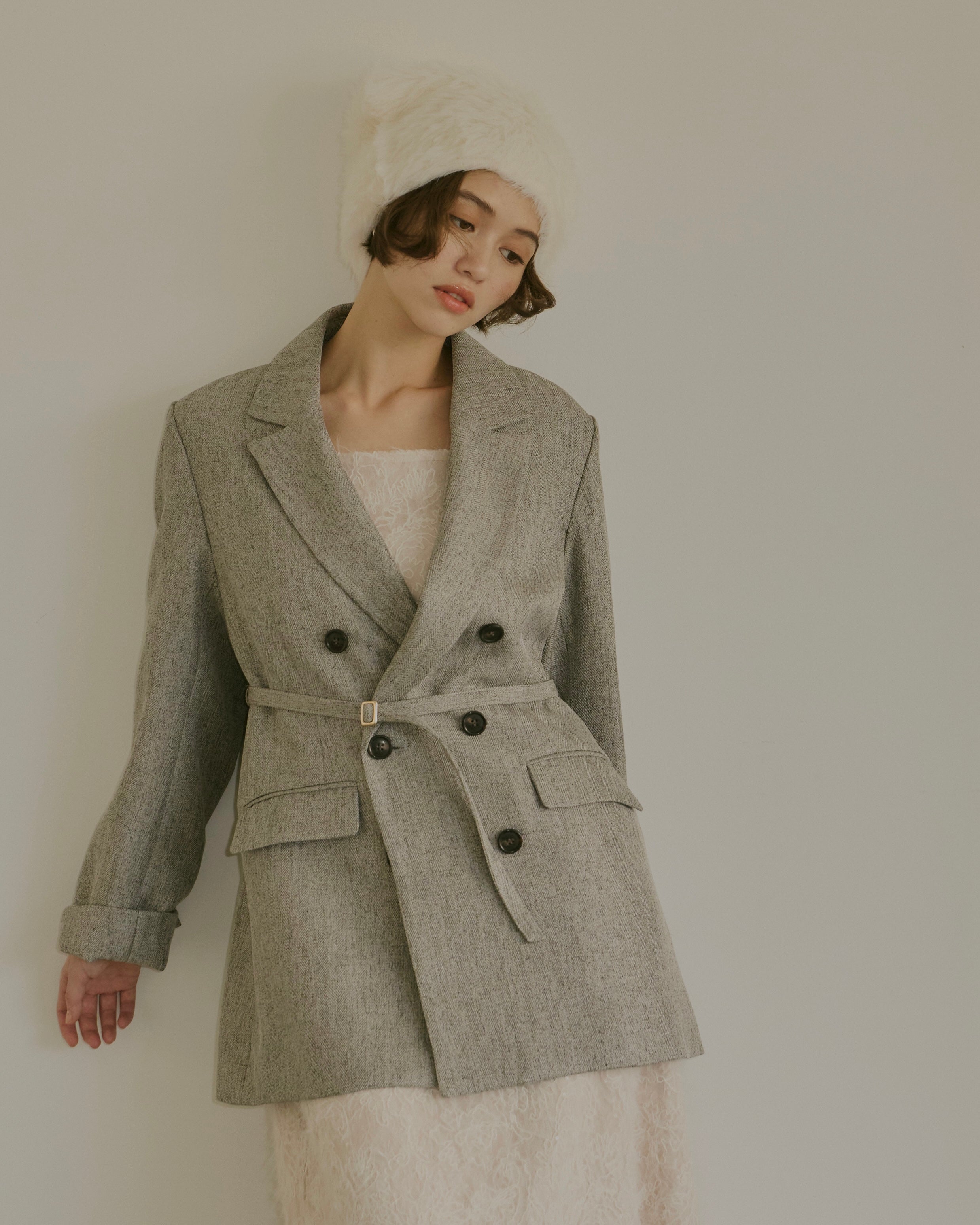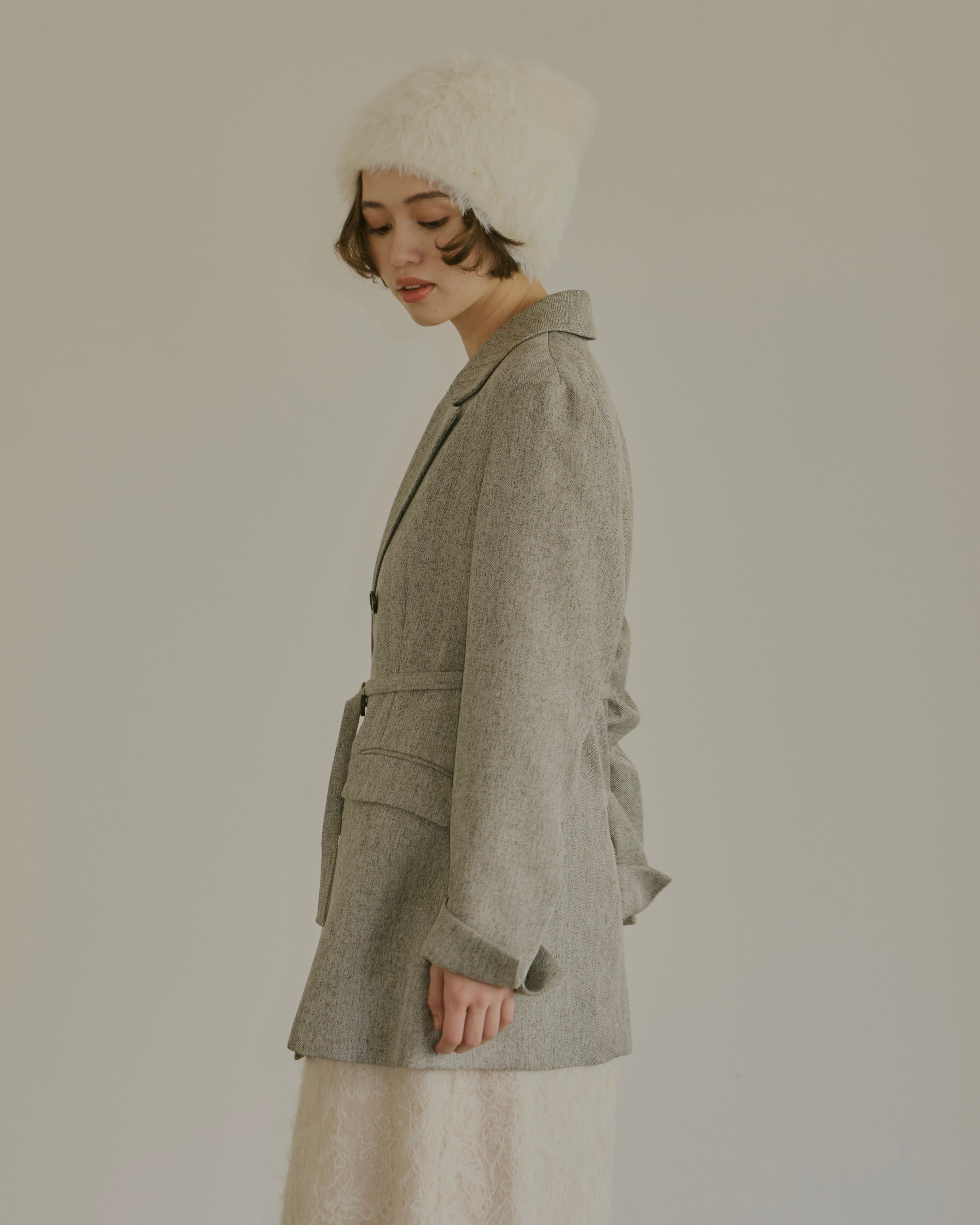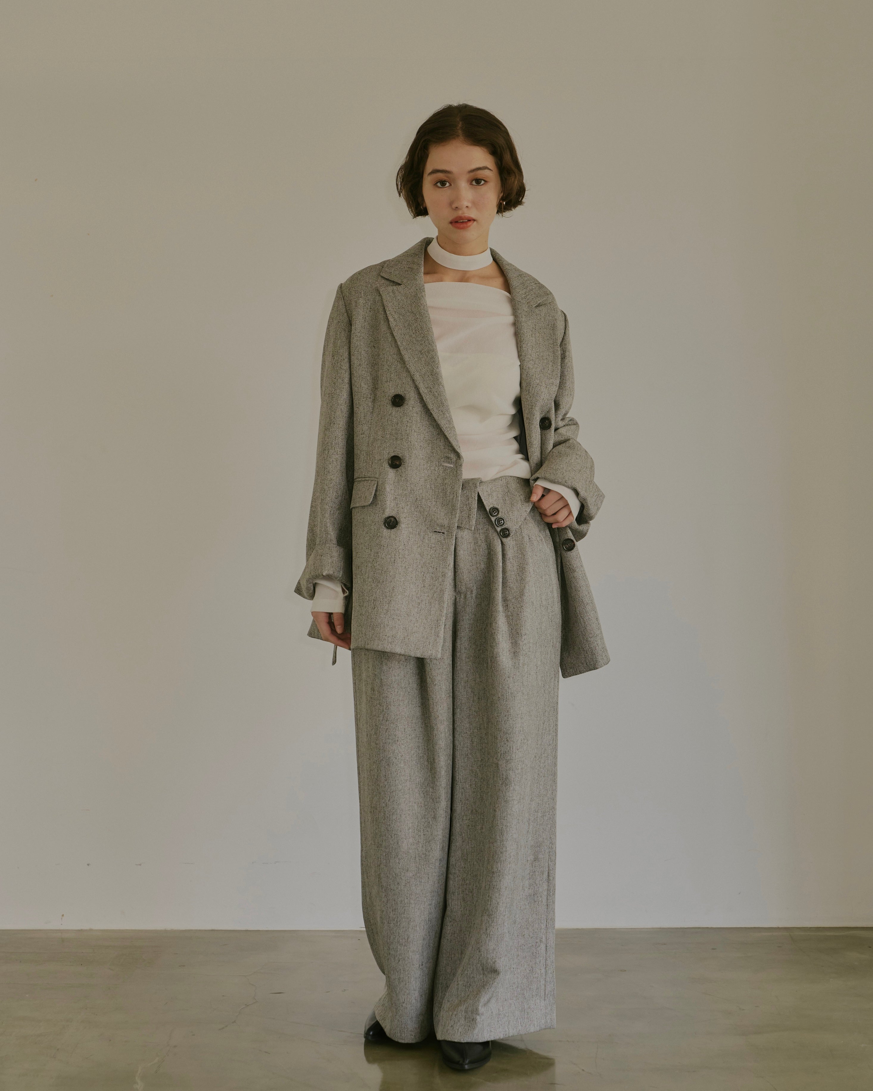 ヘリンボーン柄と単色の2展開で、様々なコーディネートに対応。