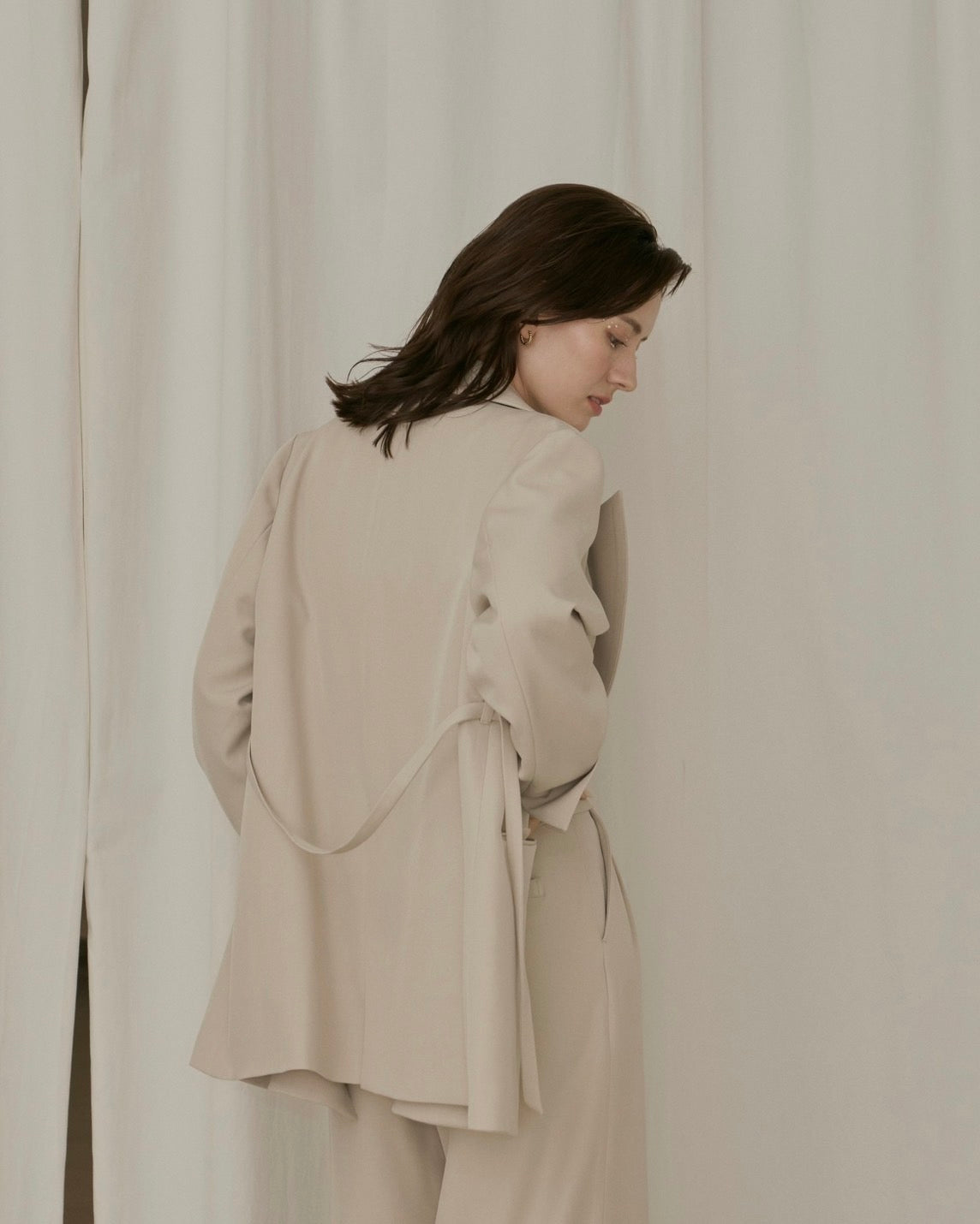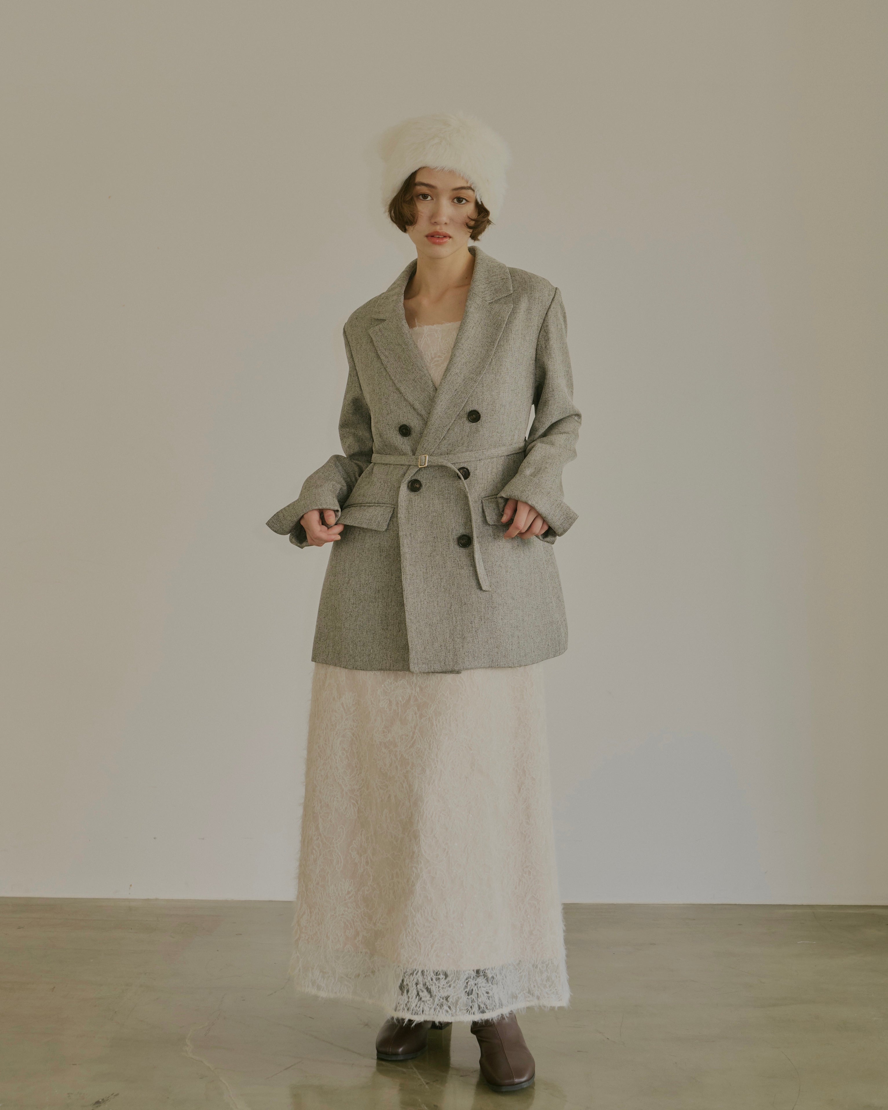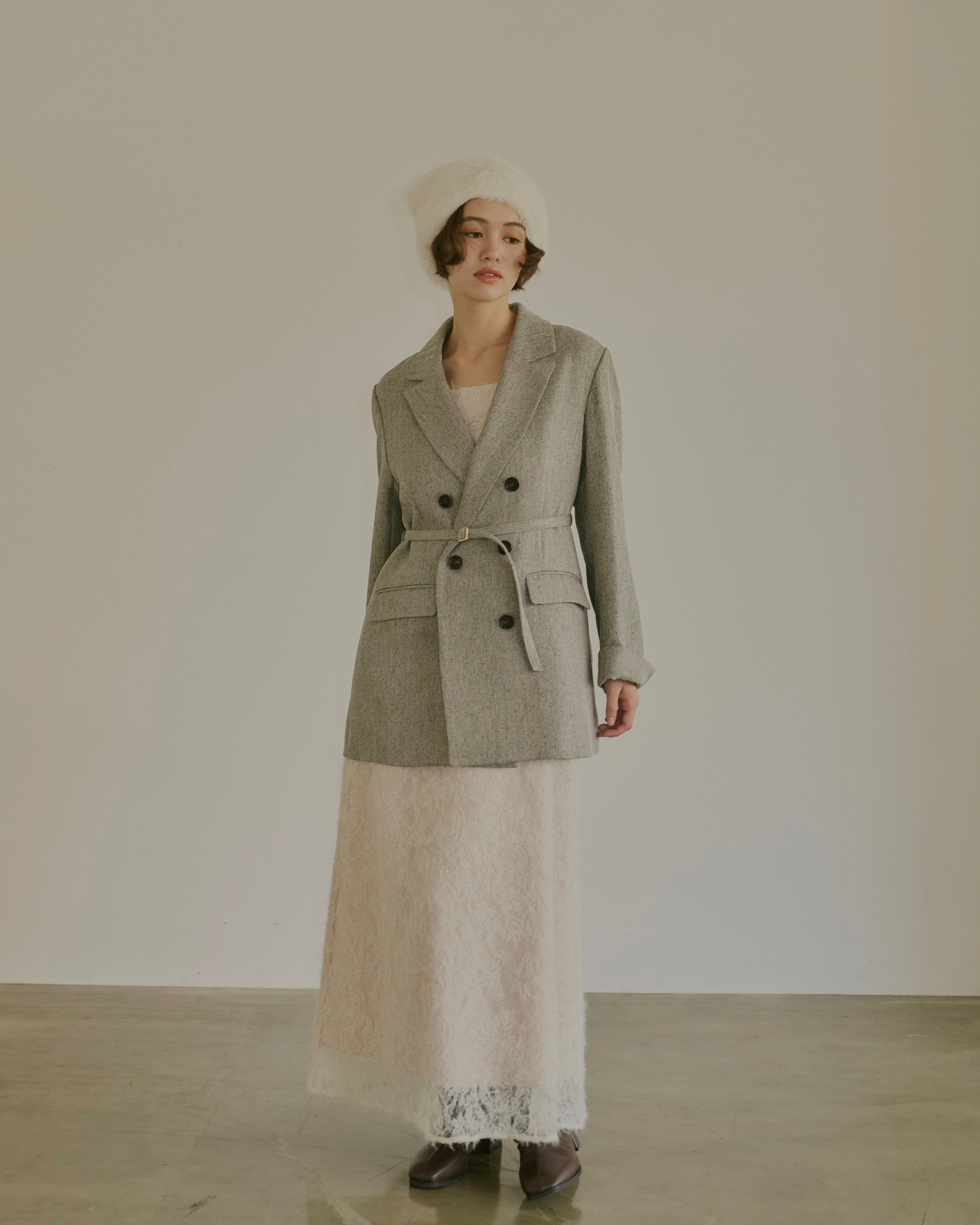 ベルト付きでウエストを引き締め、様々なシルエットを楽しめるデザインです。