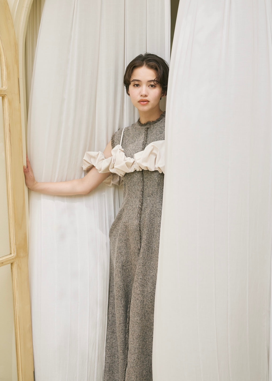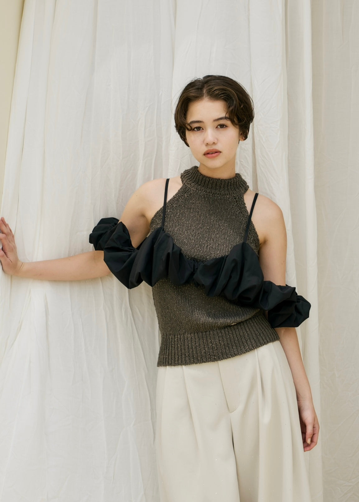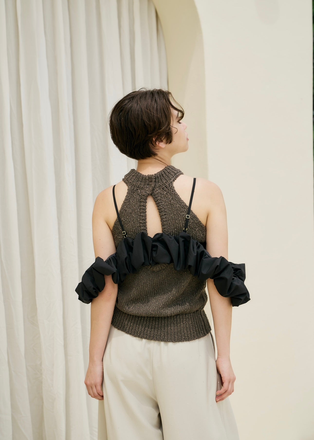 くしゅっとした立体感のあるビスチェトップス。