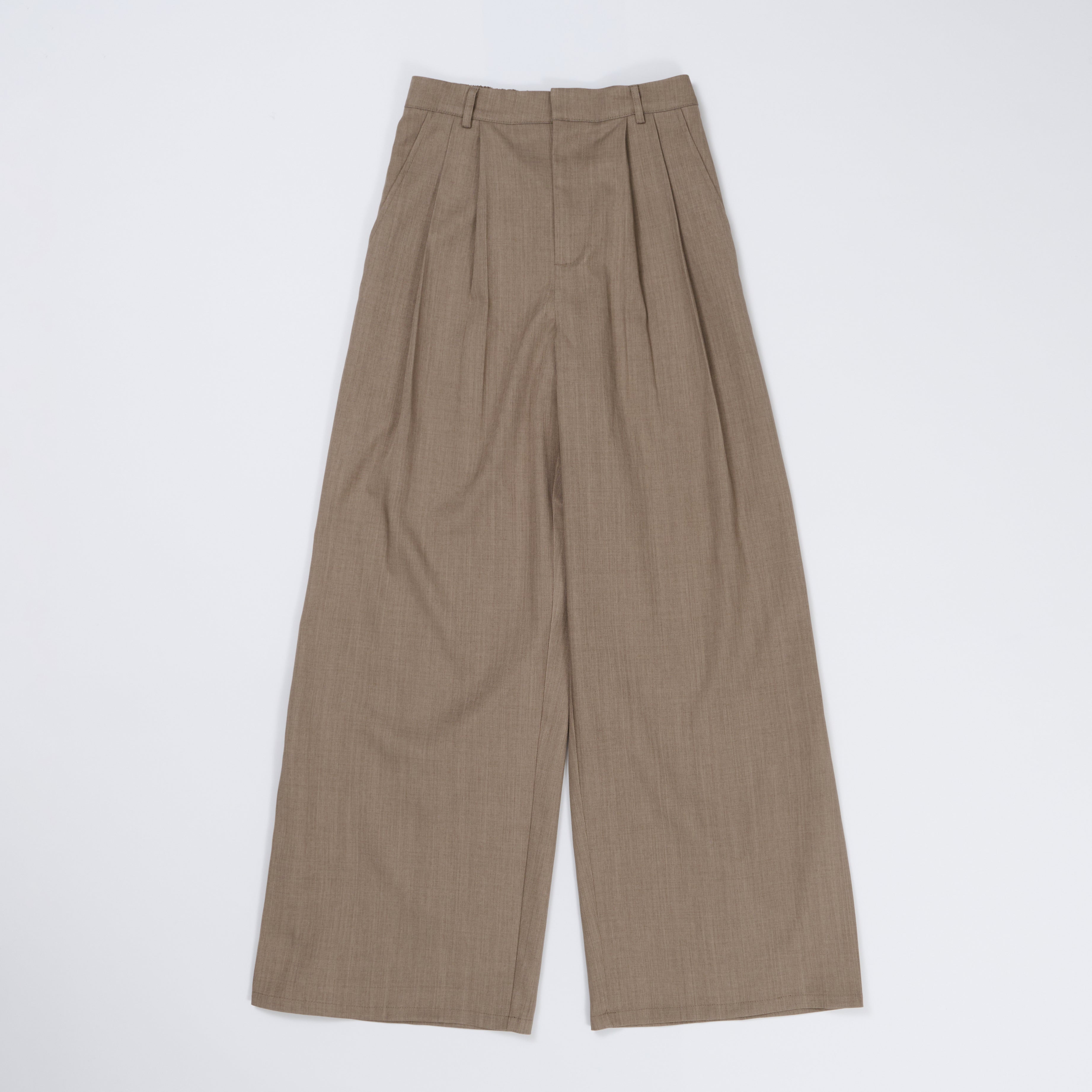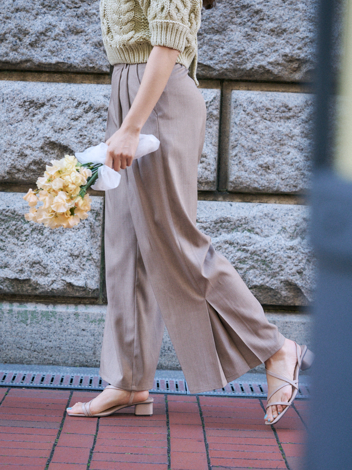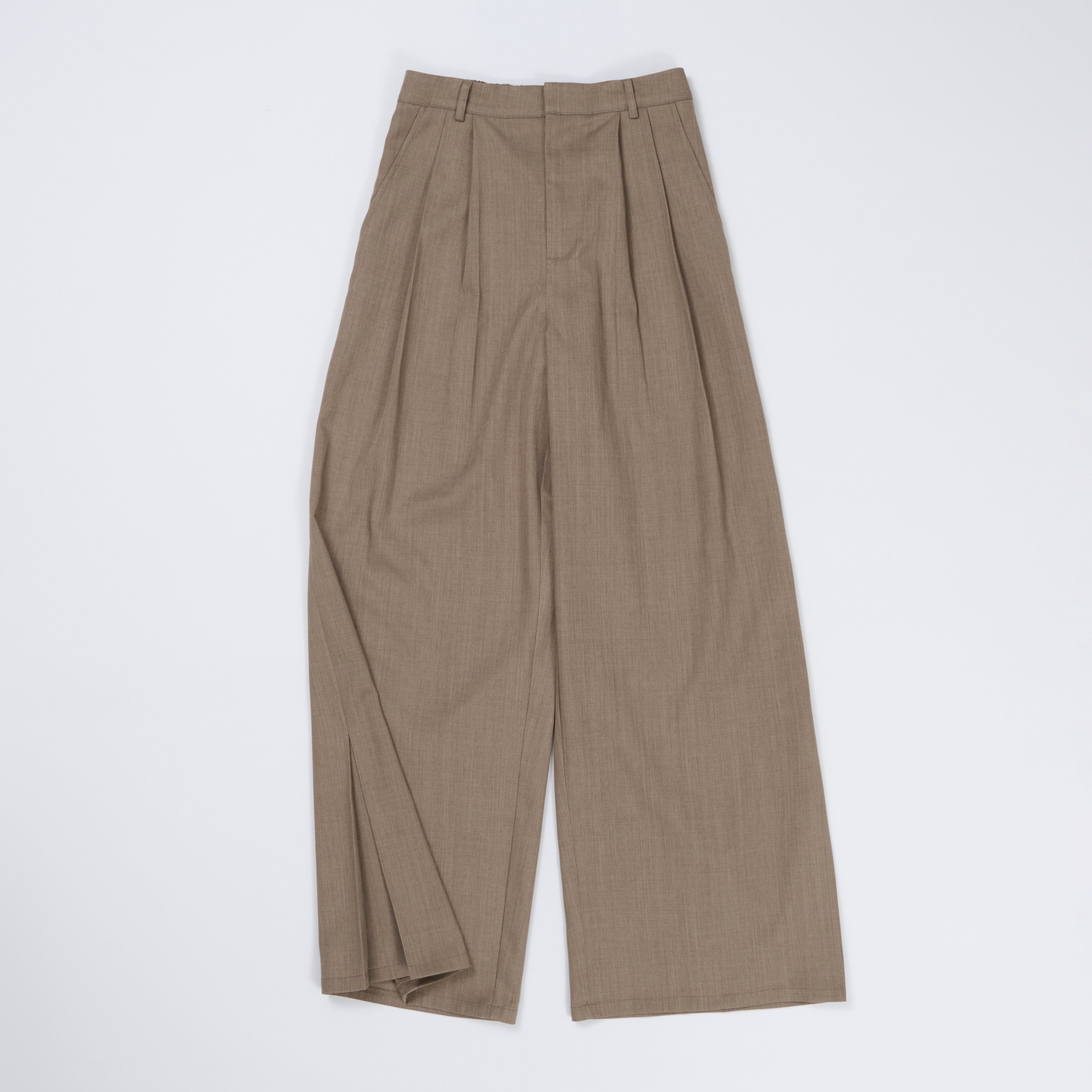 シンプルながらも洗練されたデザインが魅力のタックパンツ。