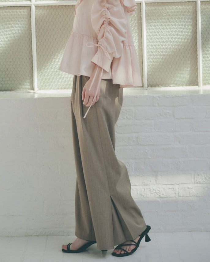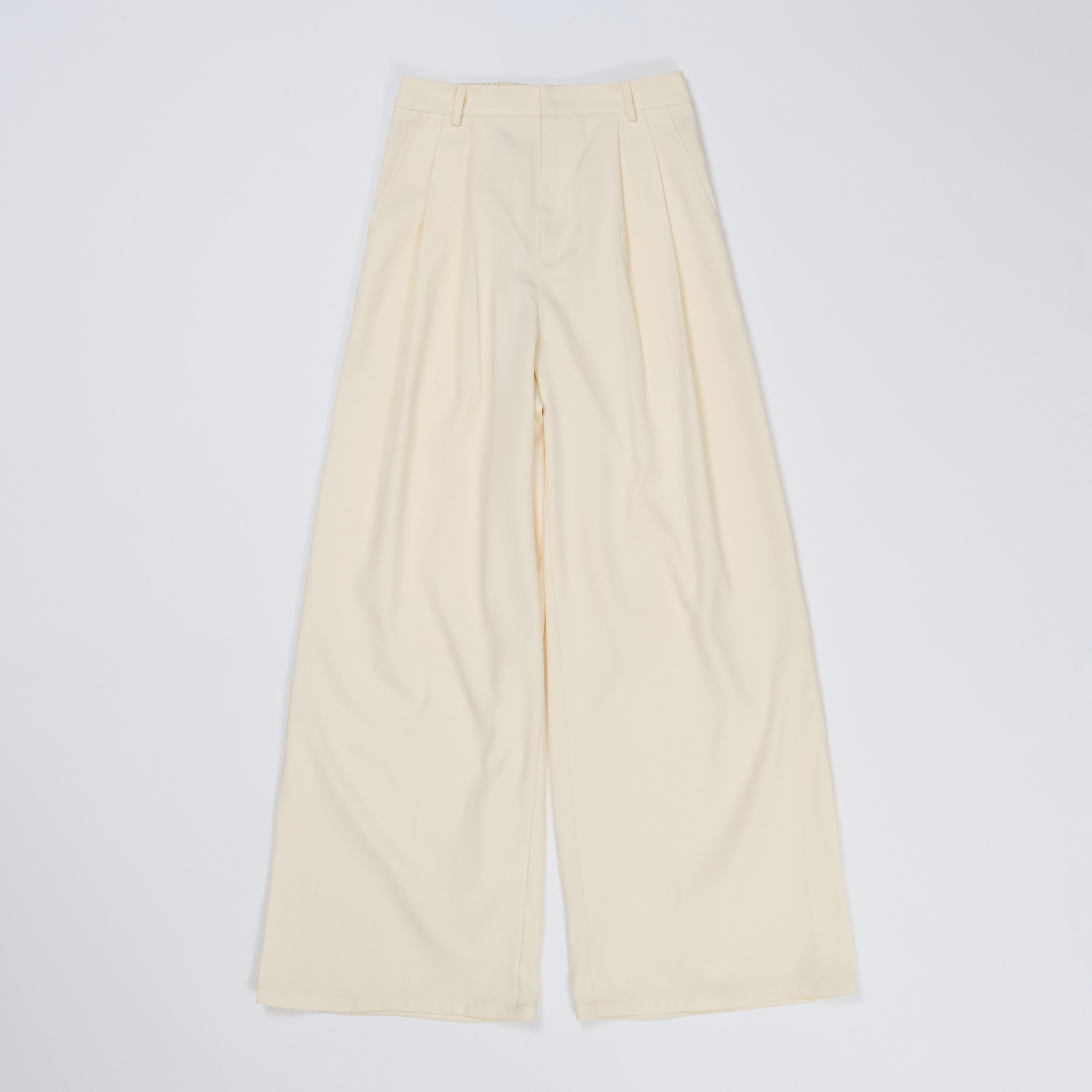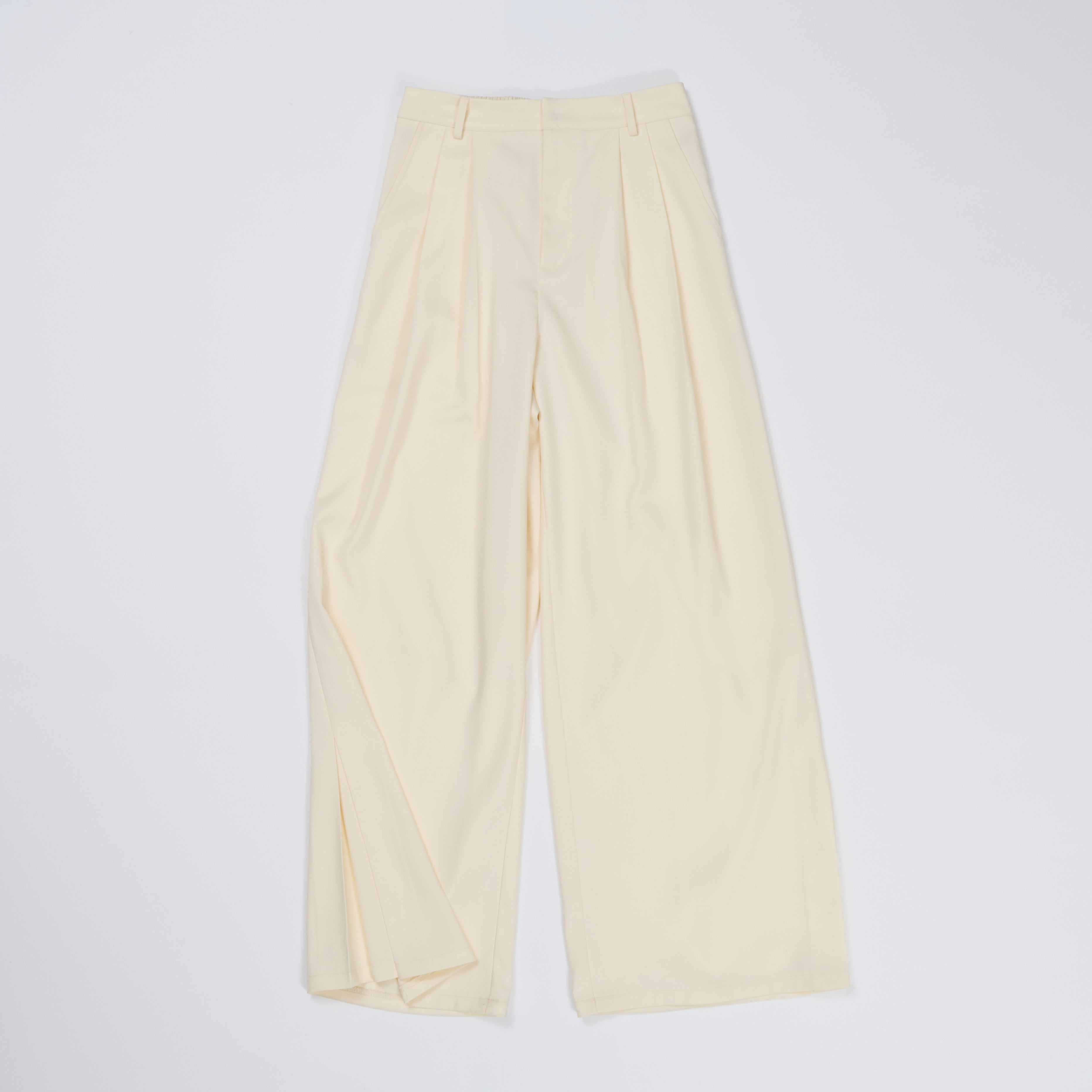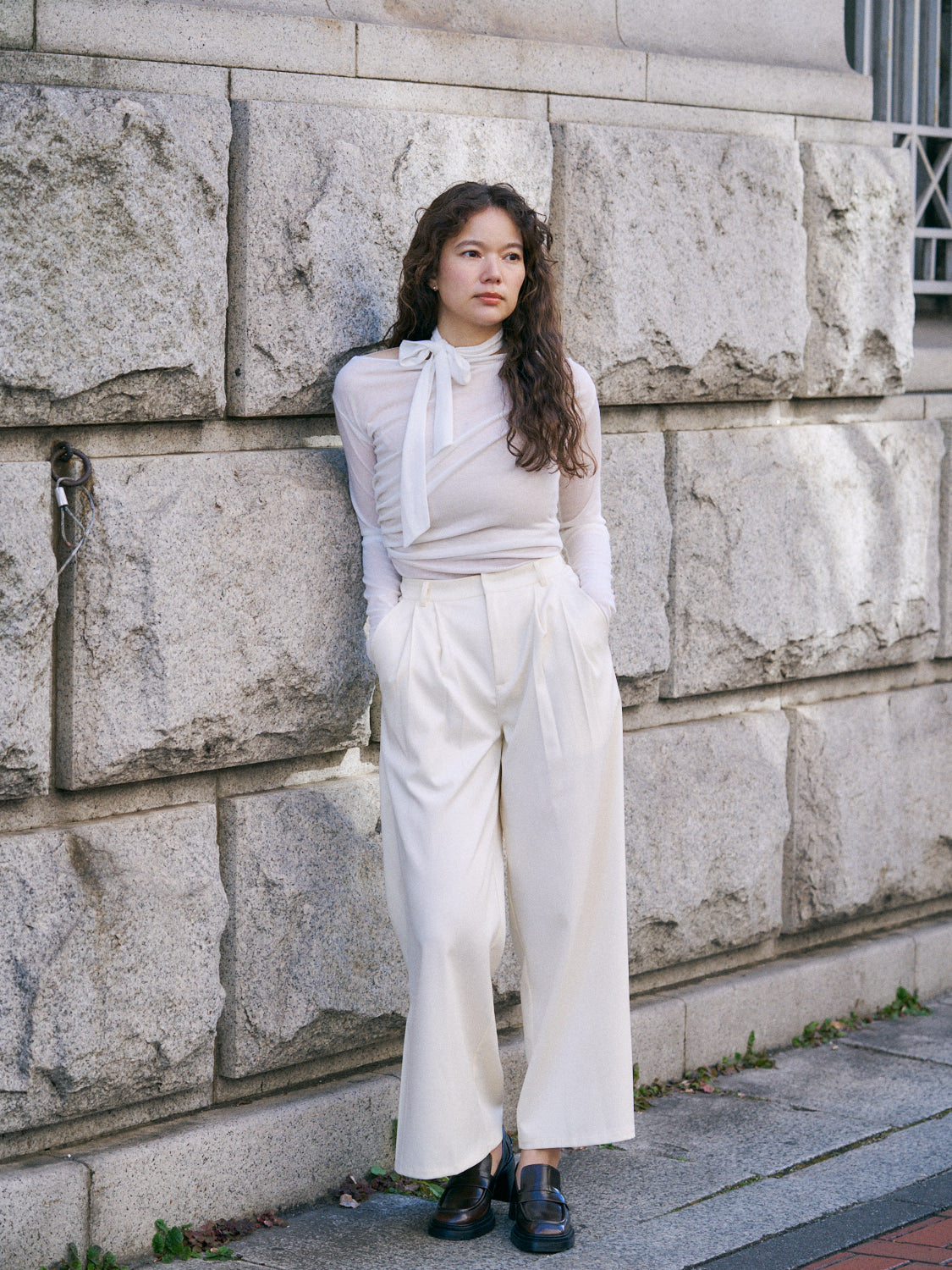 シンプルながらも洗練されたデザインが魅力のタックパンツ。