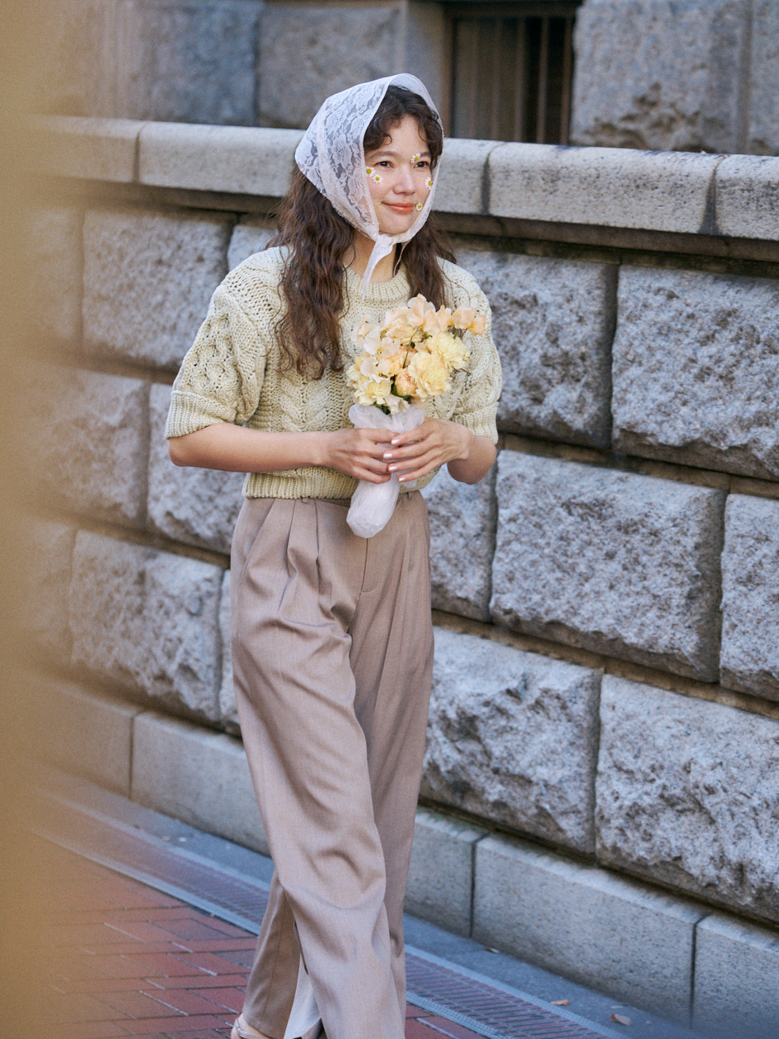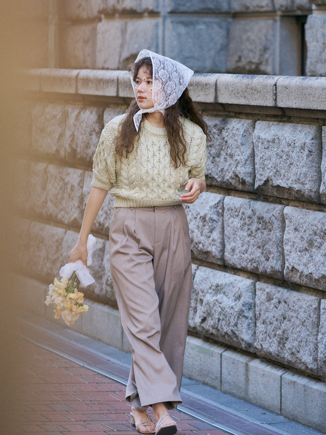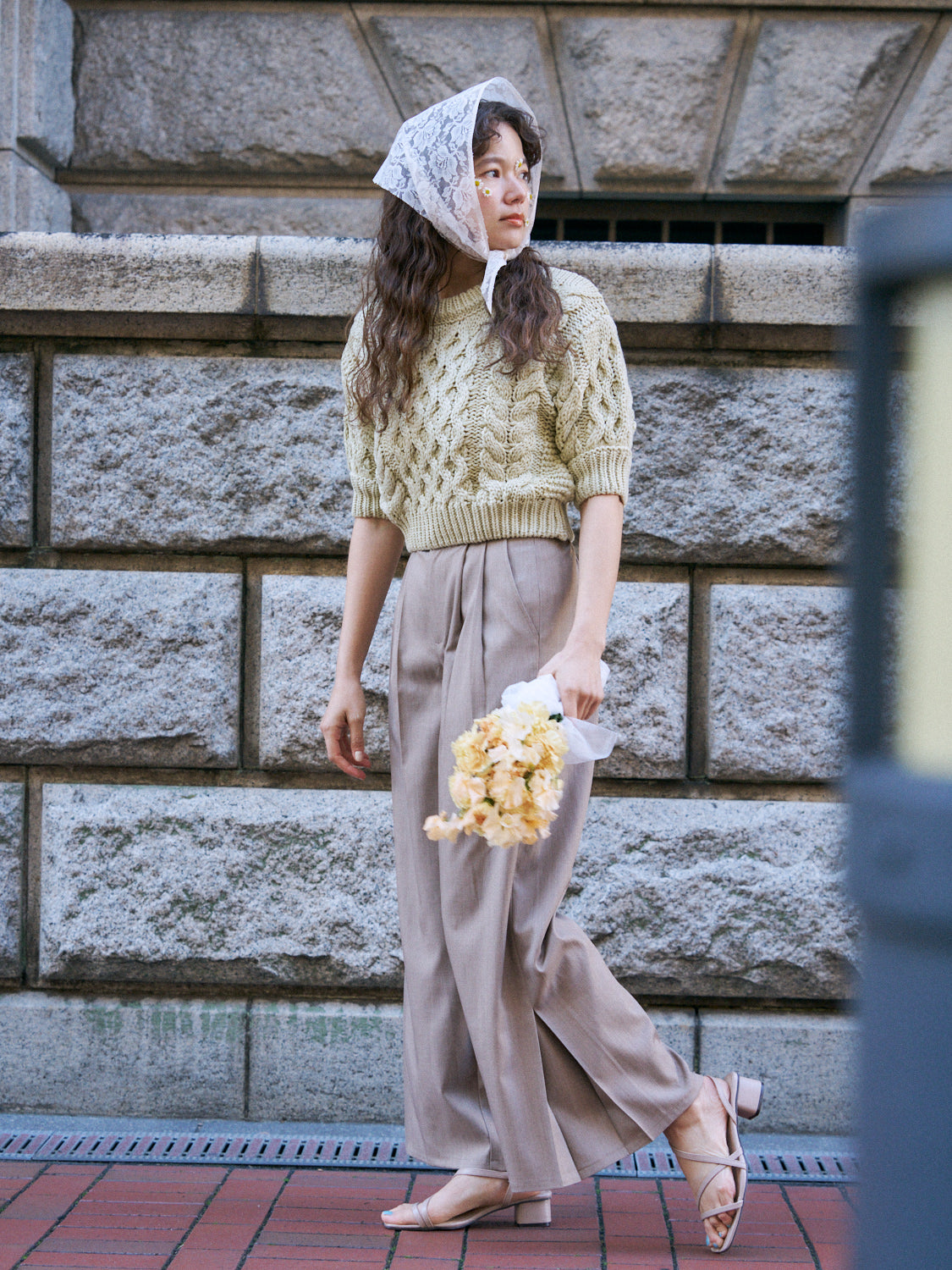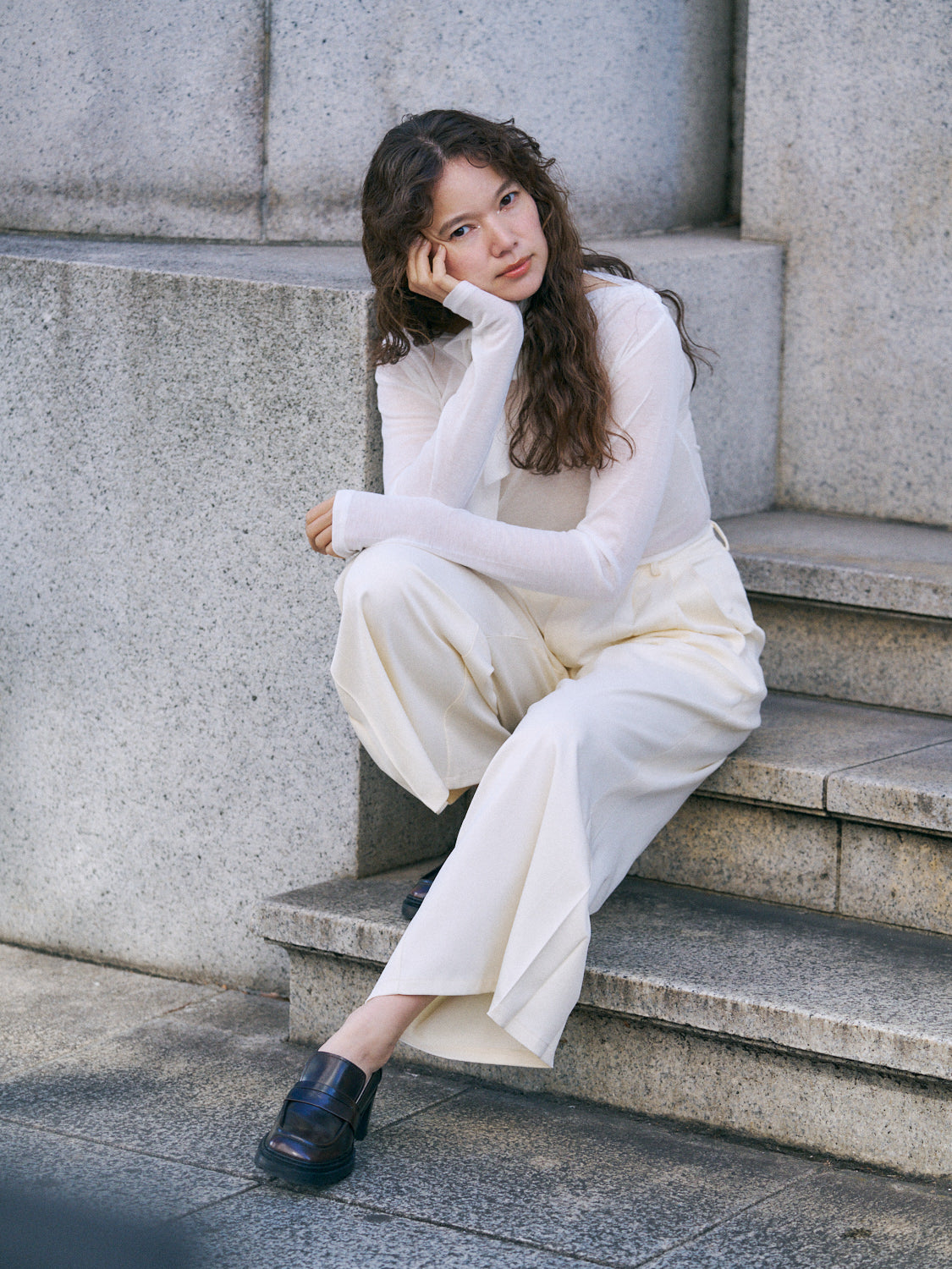 裾にスリットが入ることで、軽やかな抜け感を演出し、足元を美しく見せてくれます。