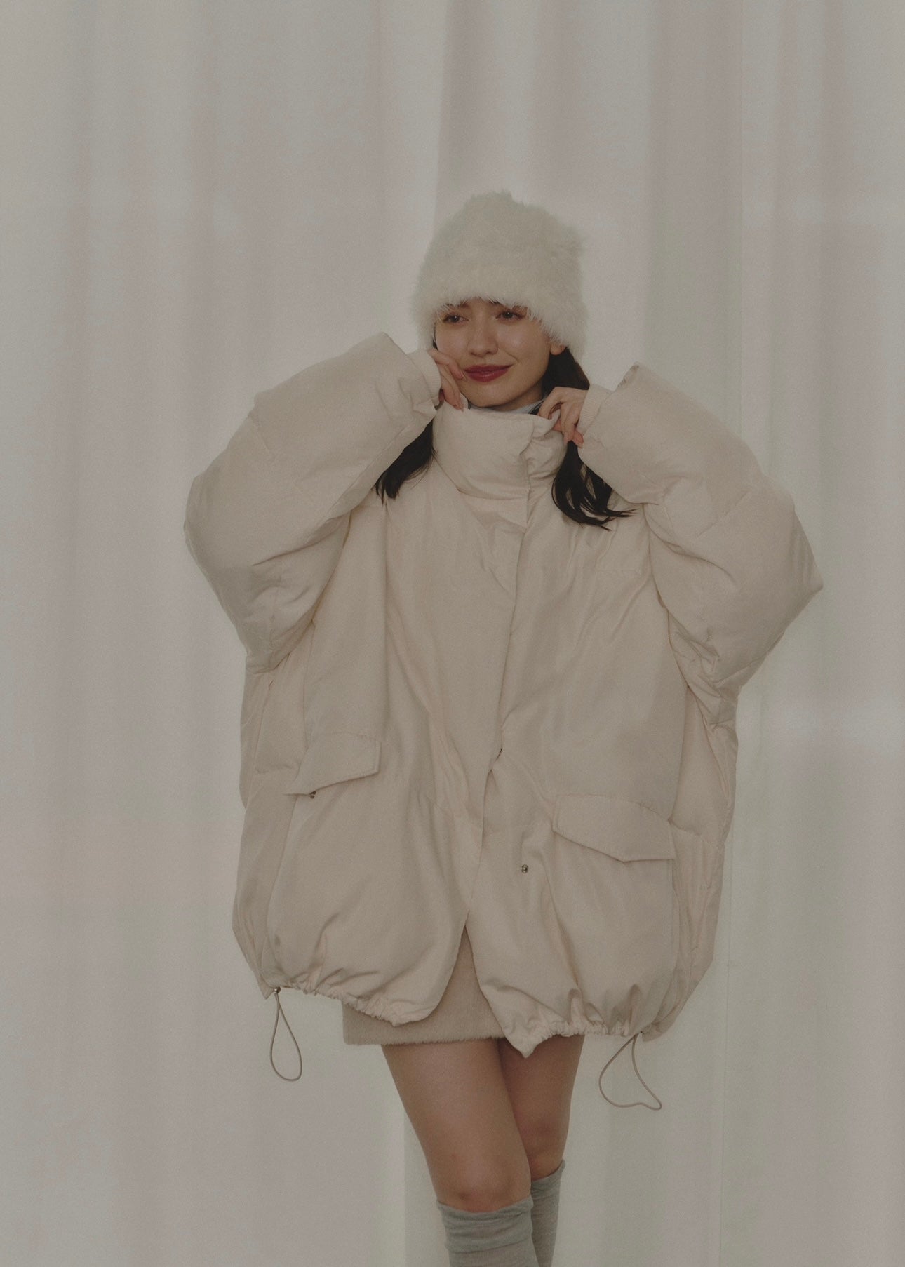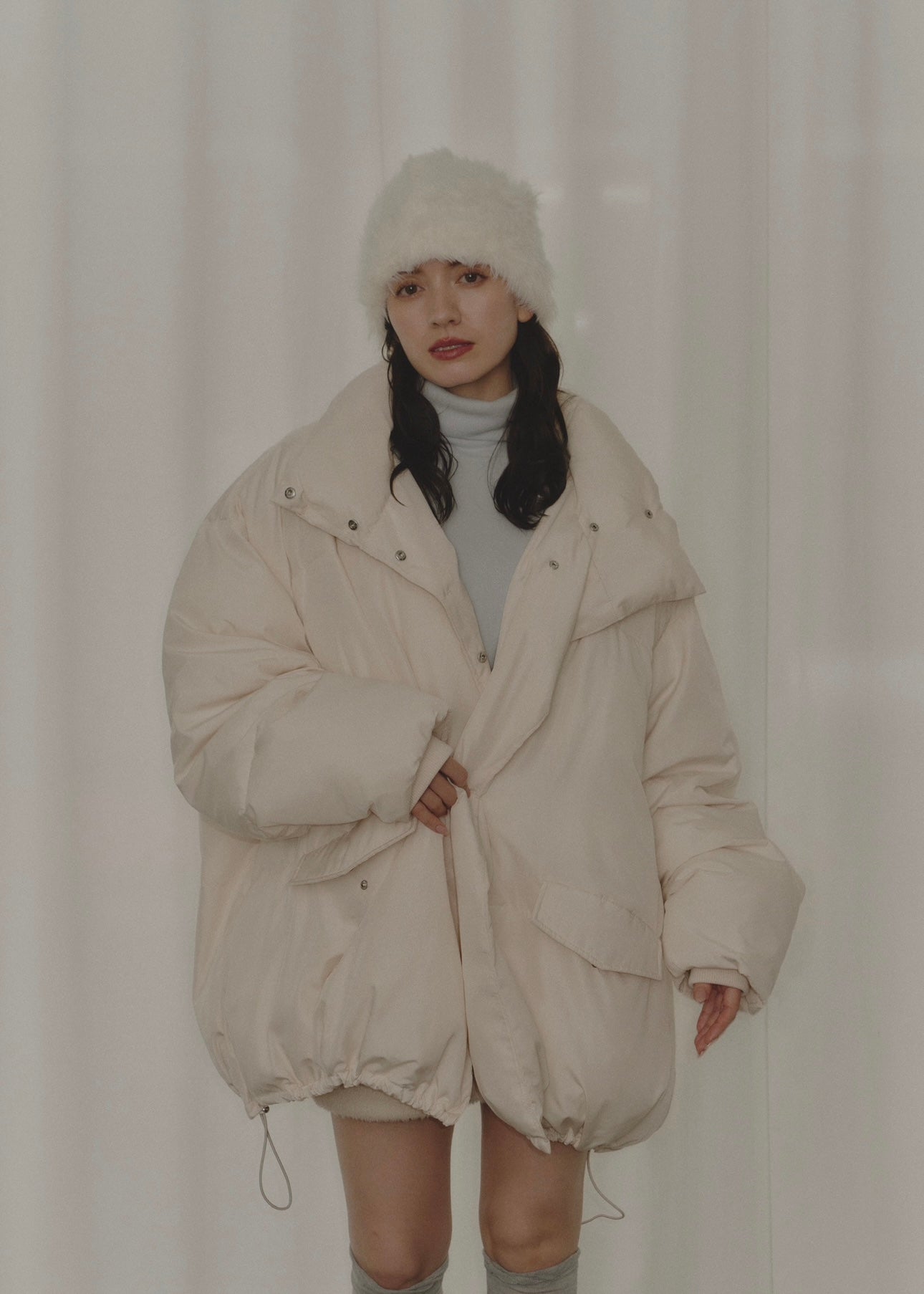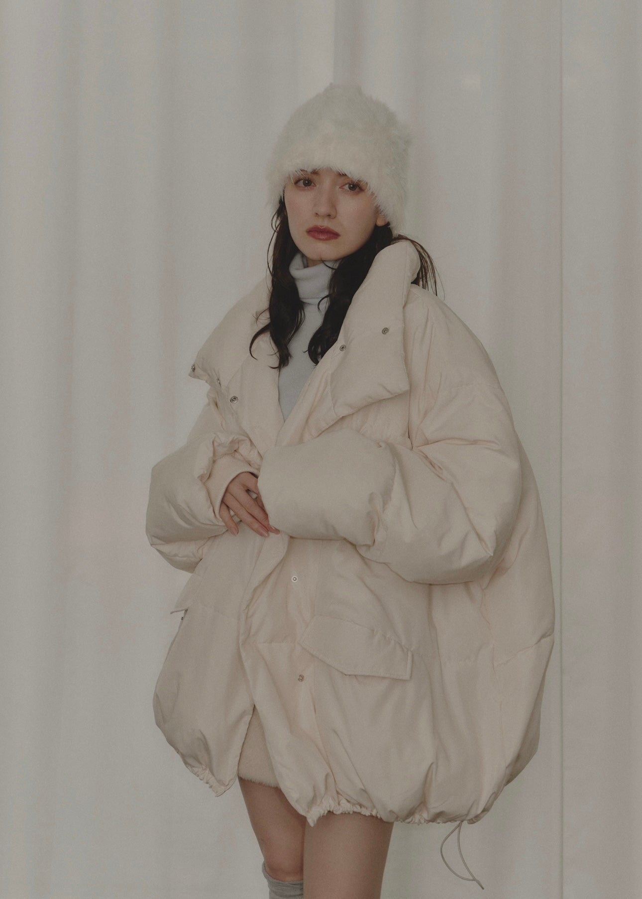 ふわっと軽い、コクーンシルエットのダウンジャケット。
