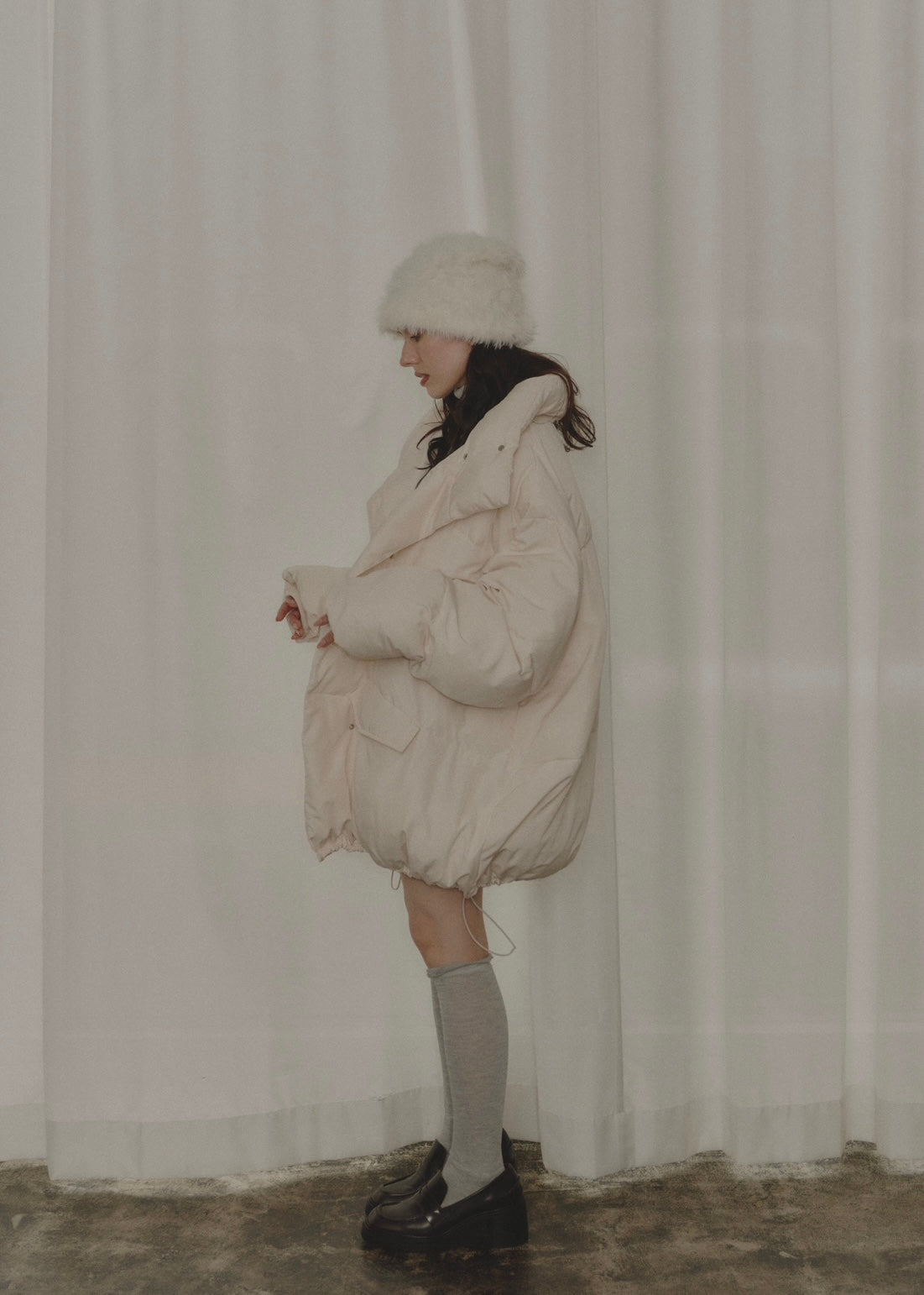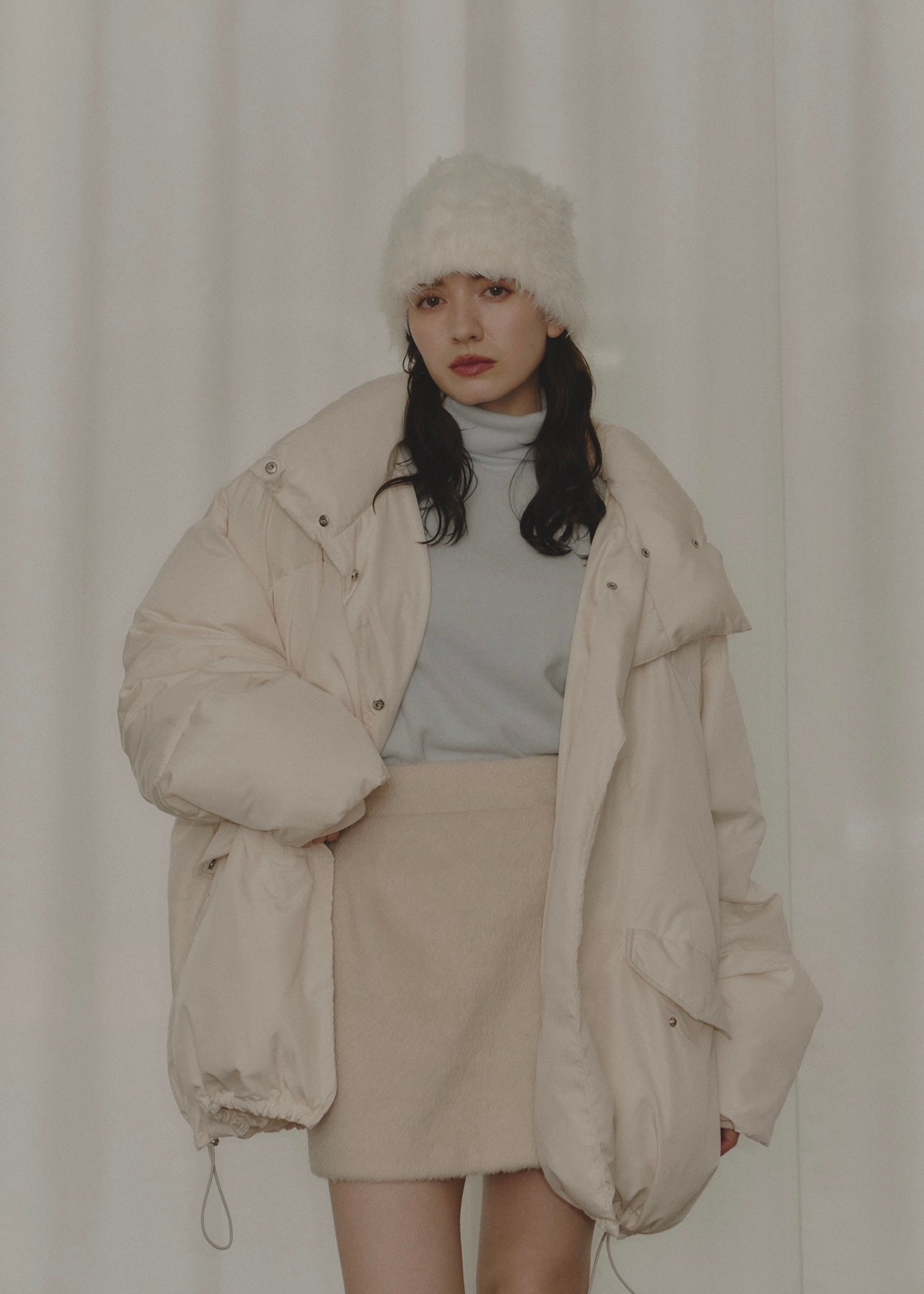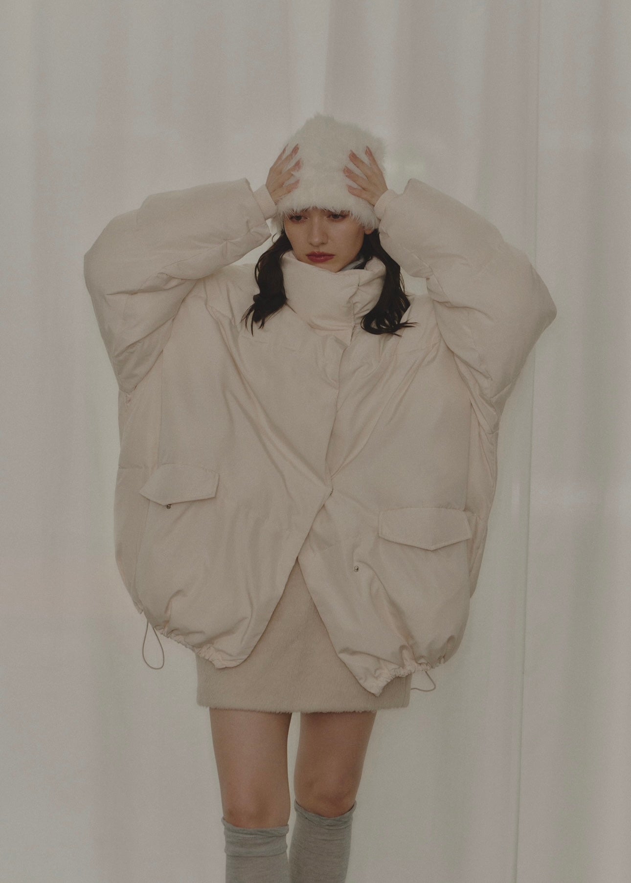 ふわっと軽い、コクーンシルエットのダウンジャケット。