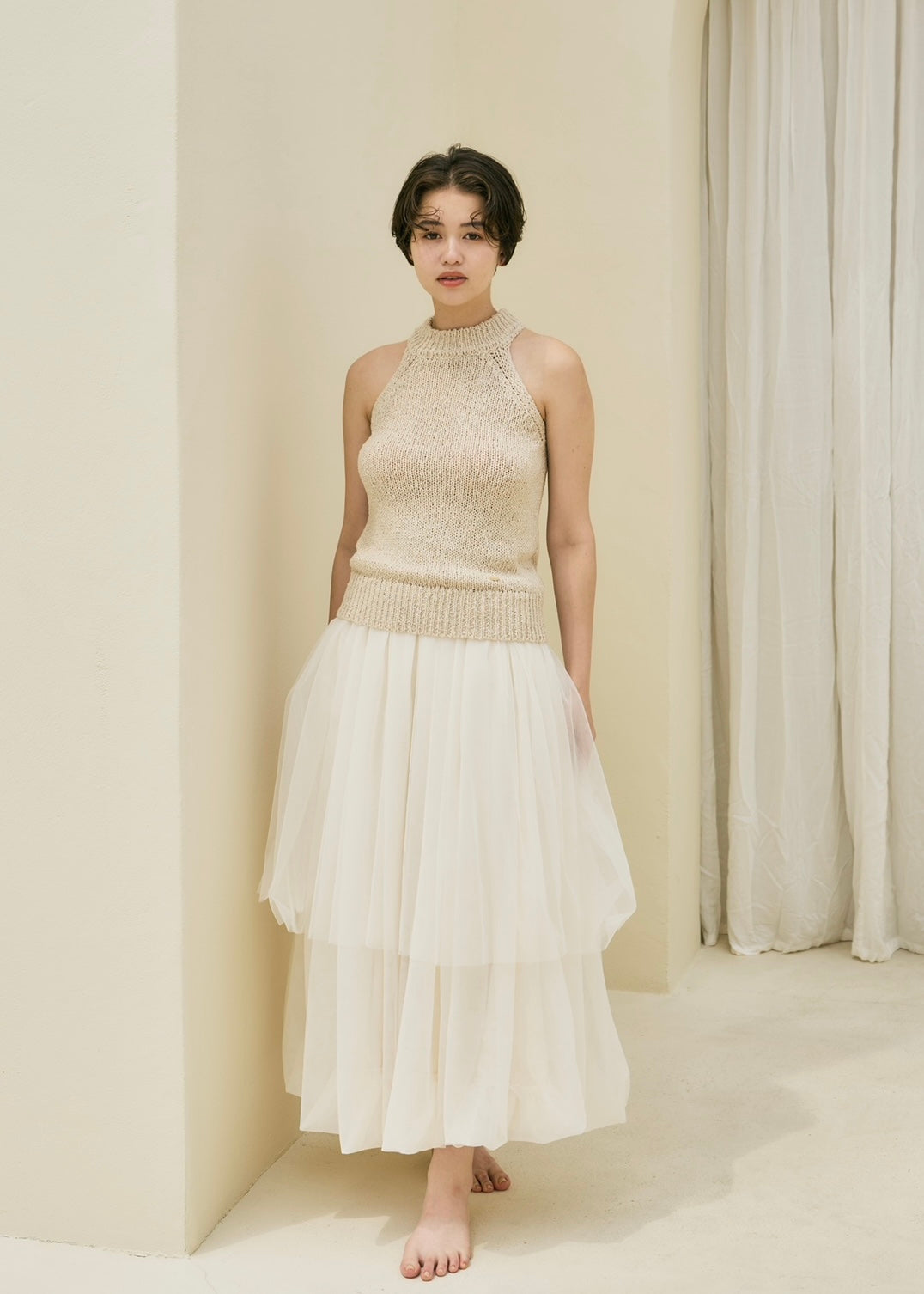 軽やかな2枚のチュールを重ねることで、