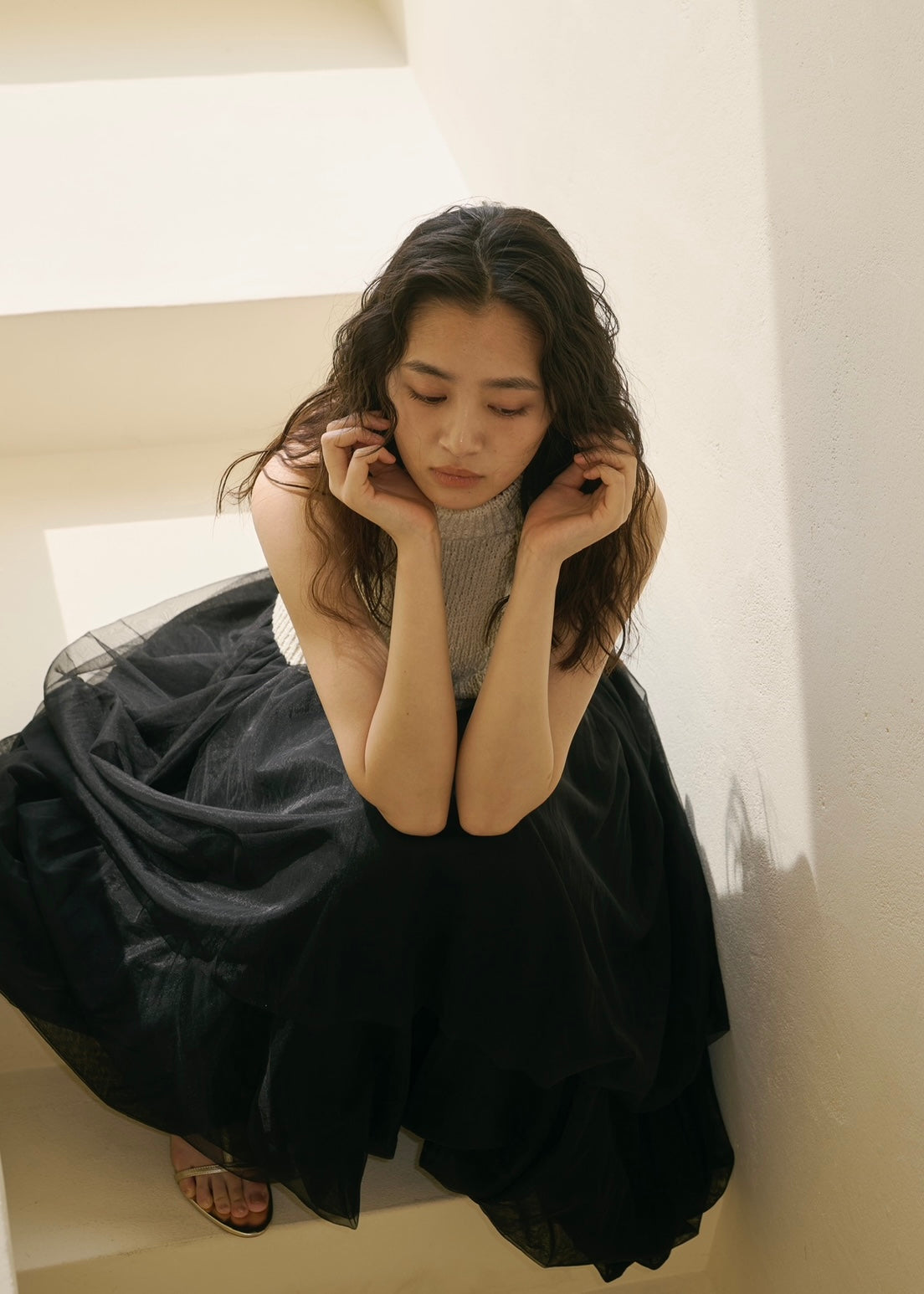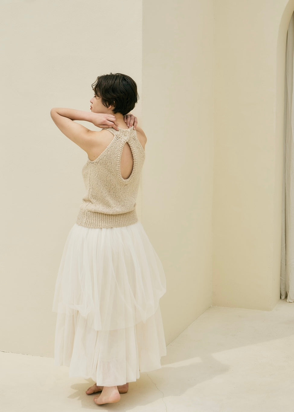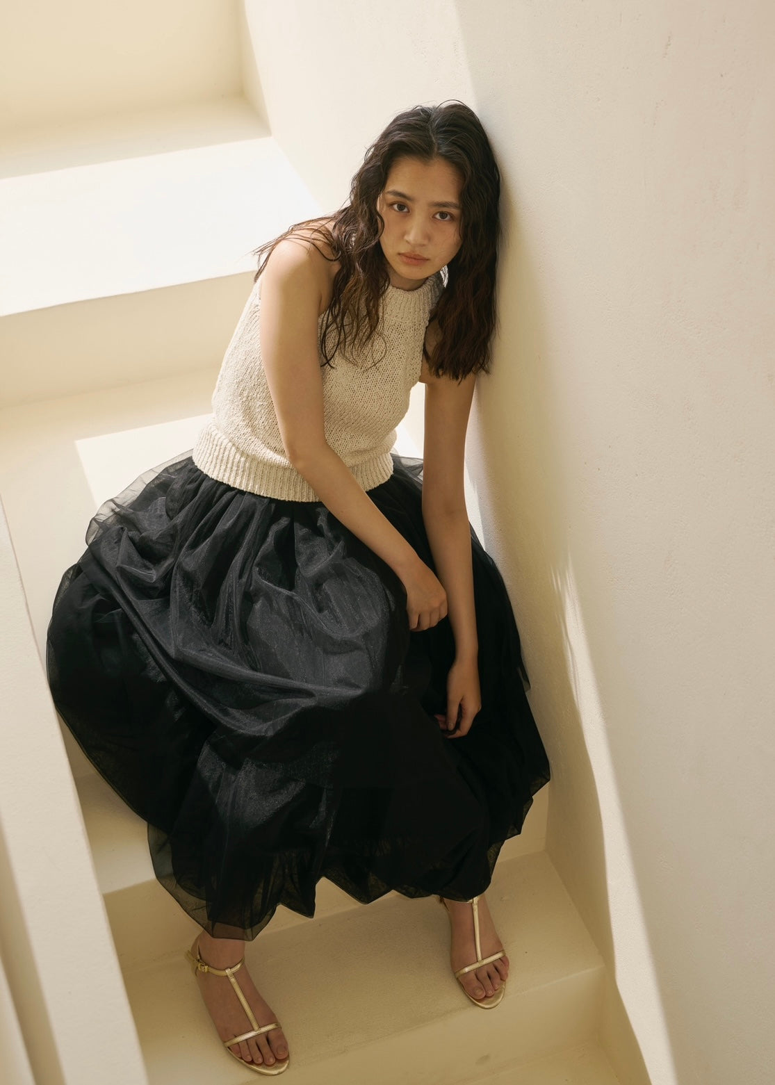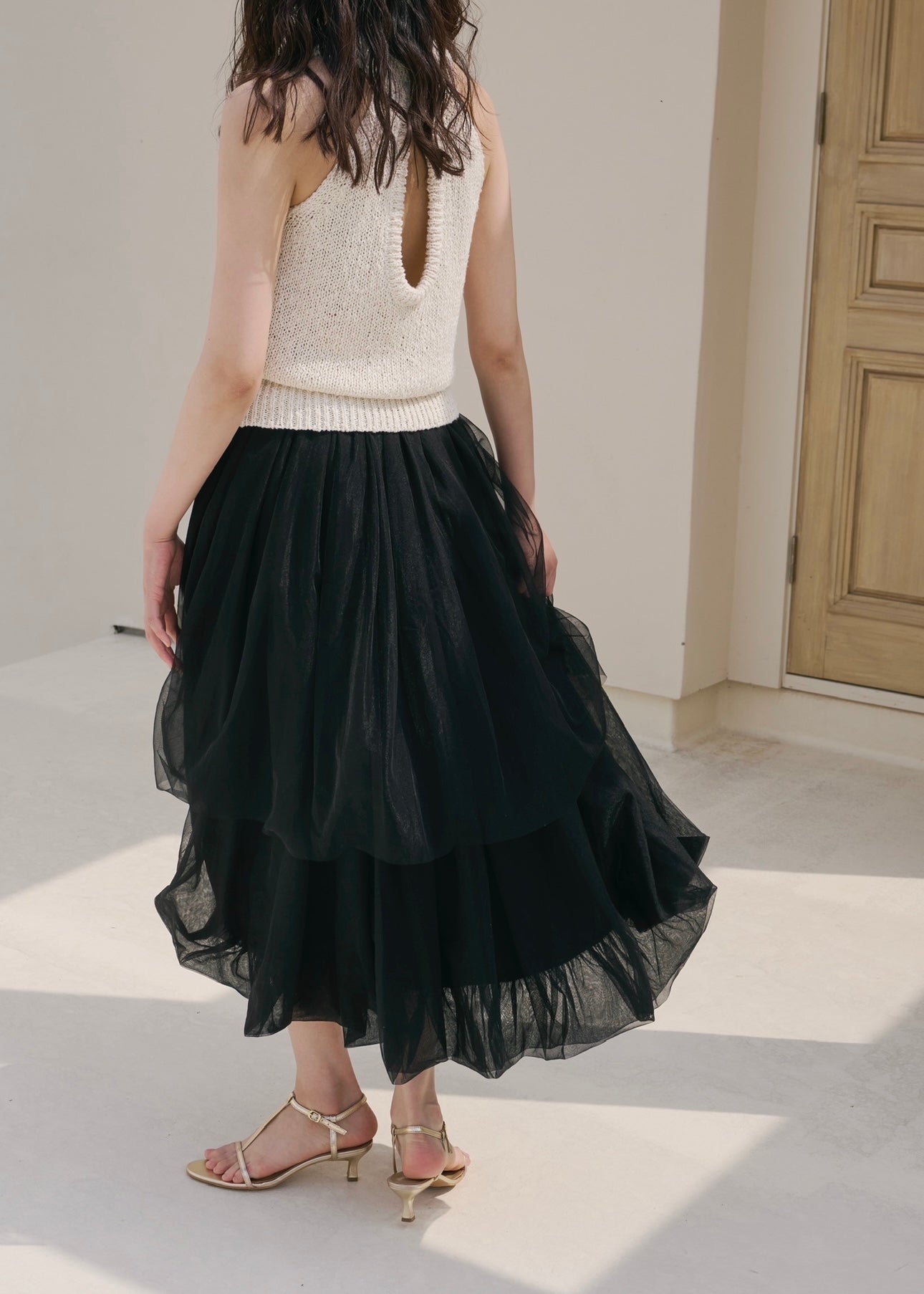 歩くたび、風を纏って浮かぶように揺れるシルエットのチュールスカート。
