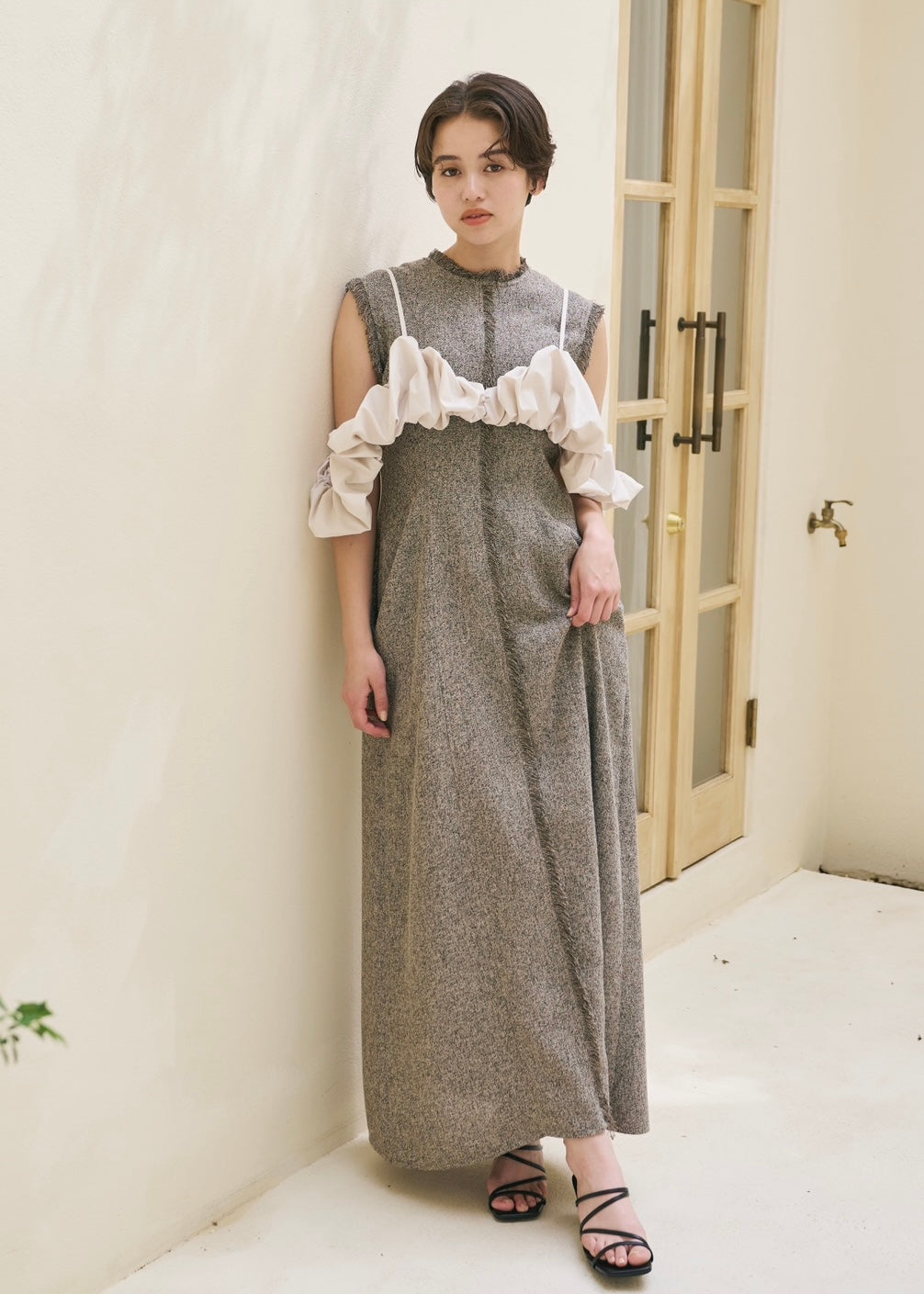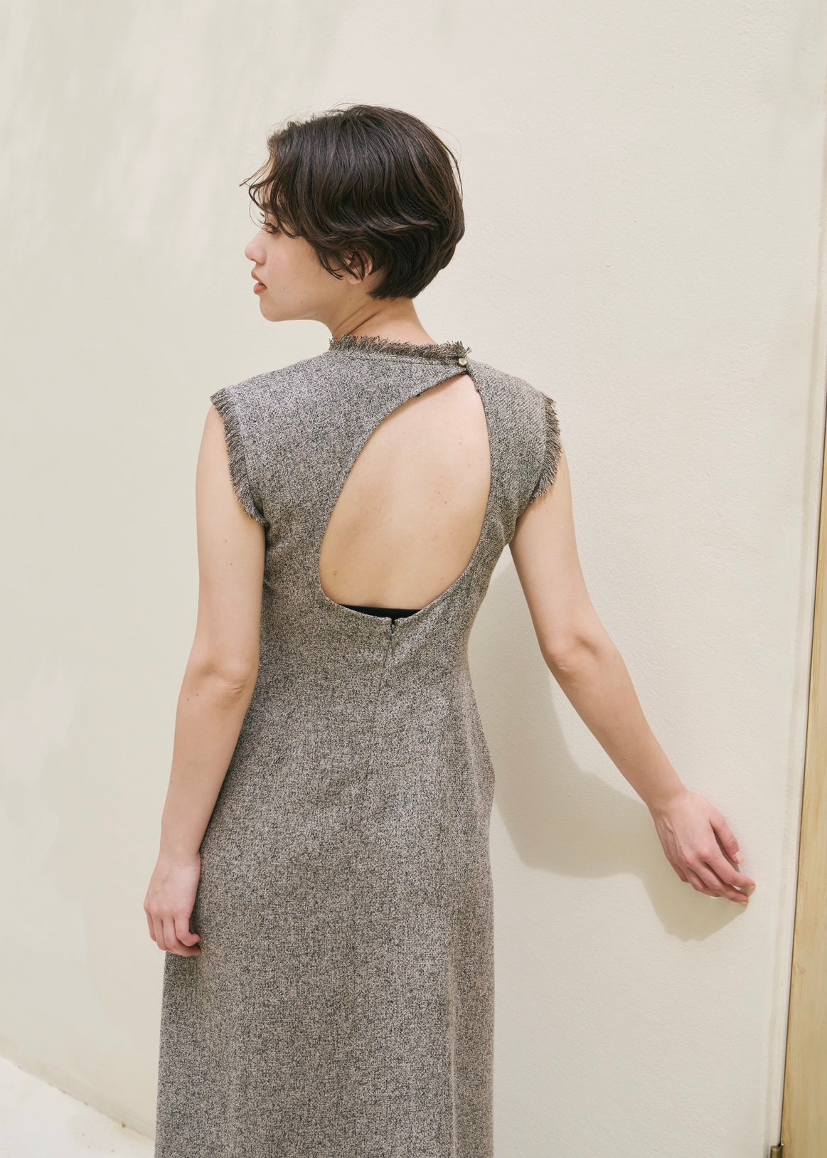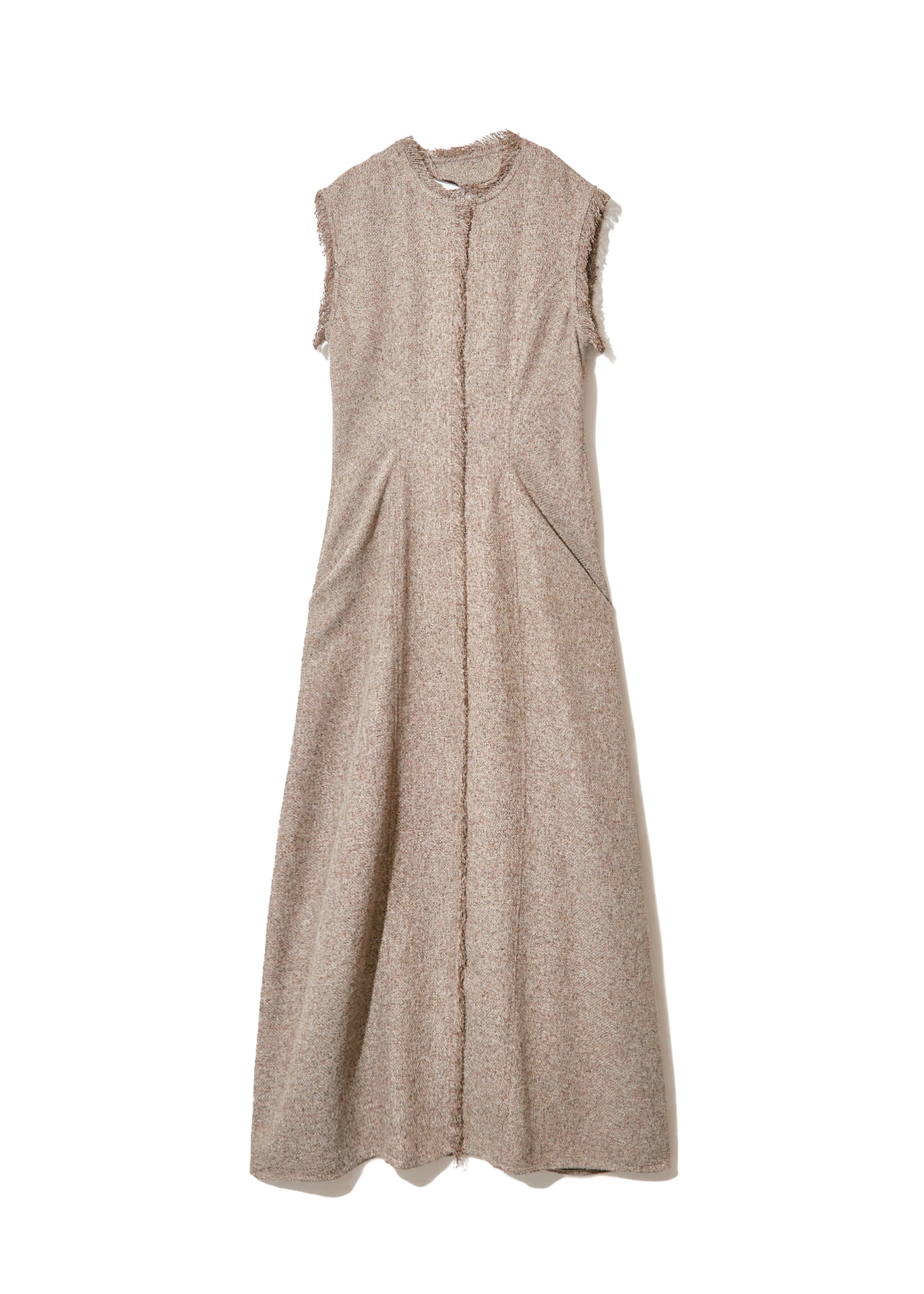 軽やかなサマーツイード素材で仕立てたワンピース。