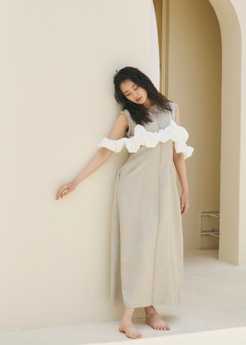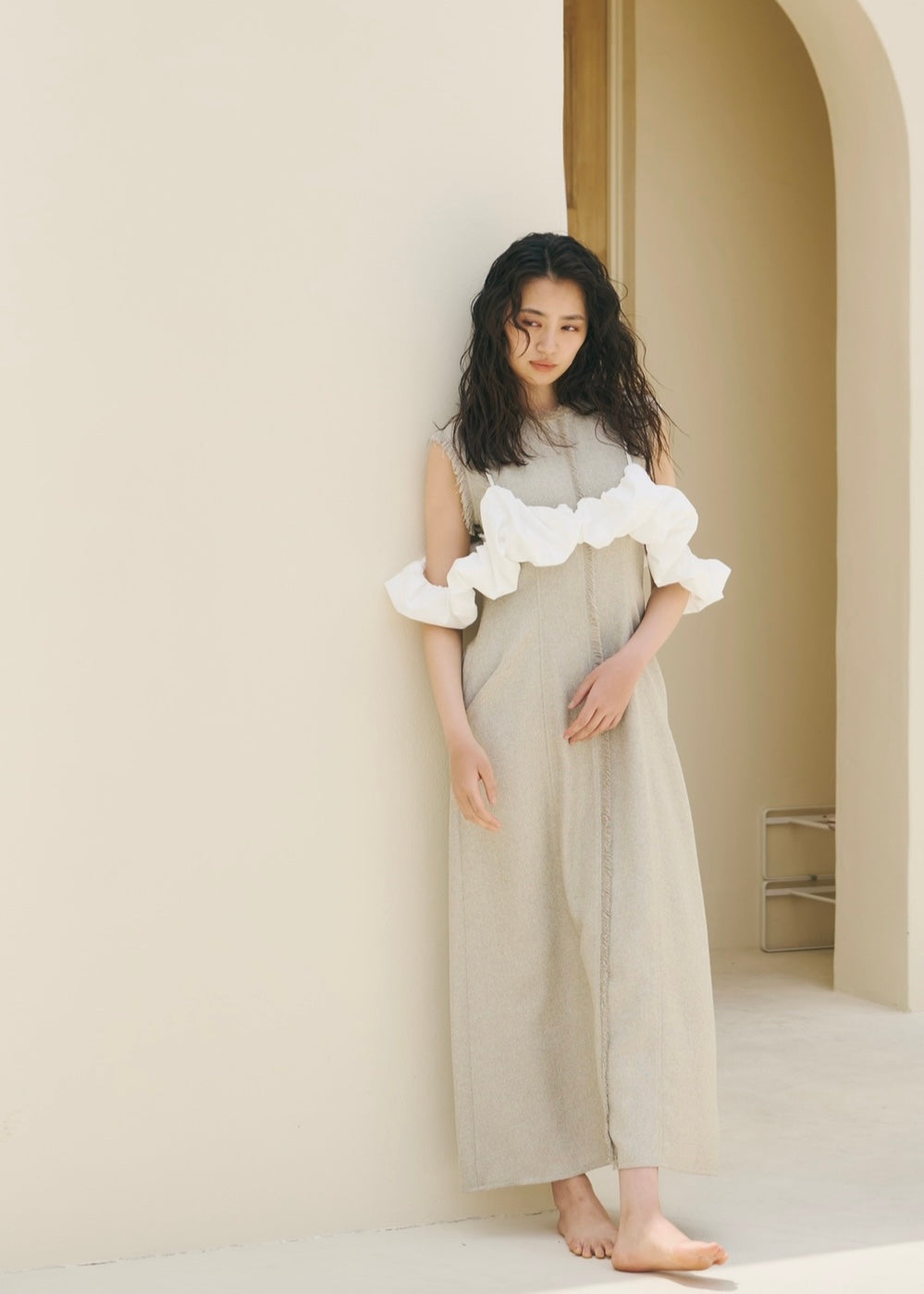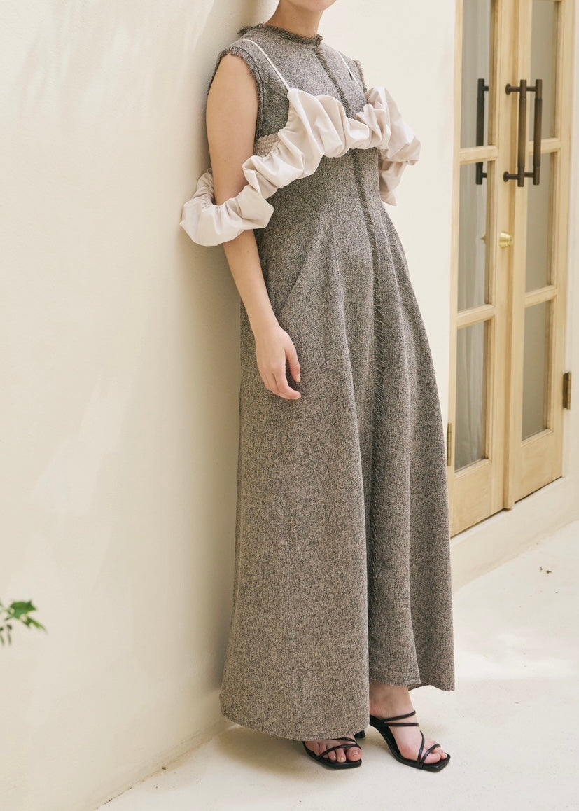 軽やかなサマーツイード素材で仕立てたワンピース。