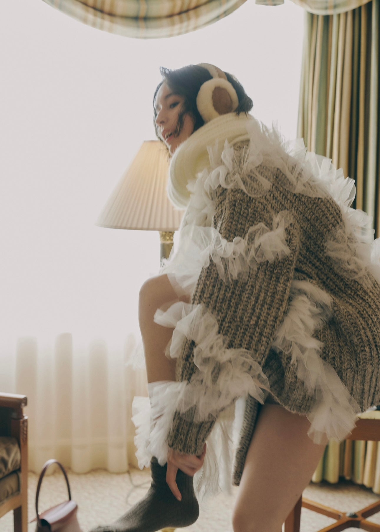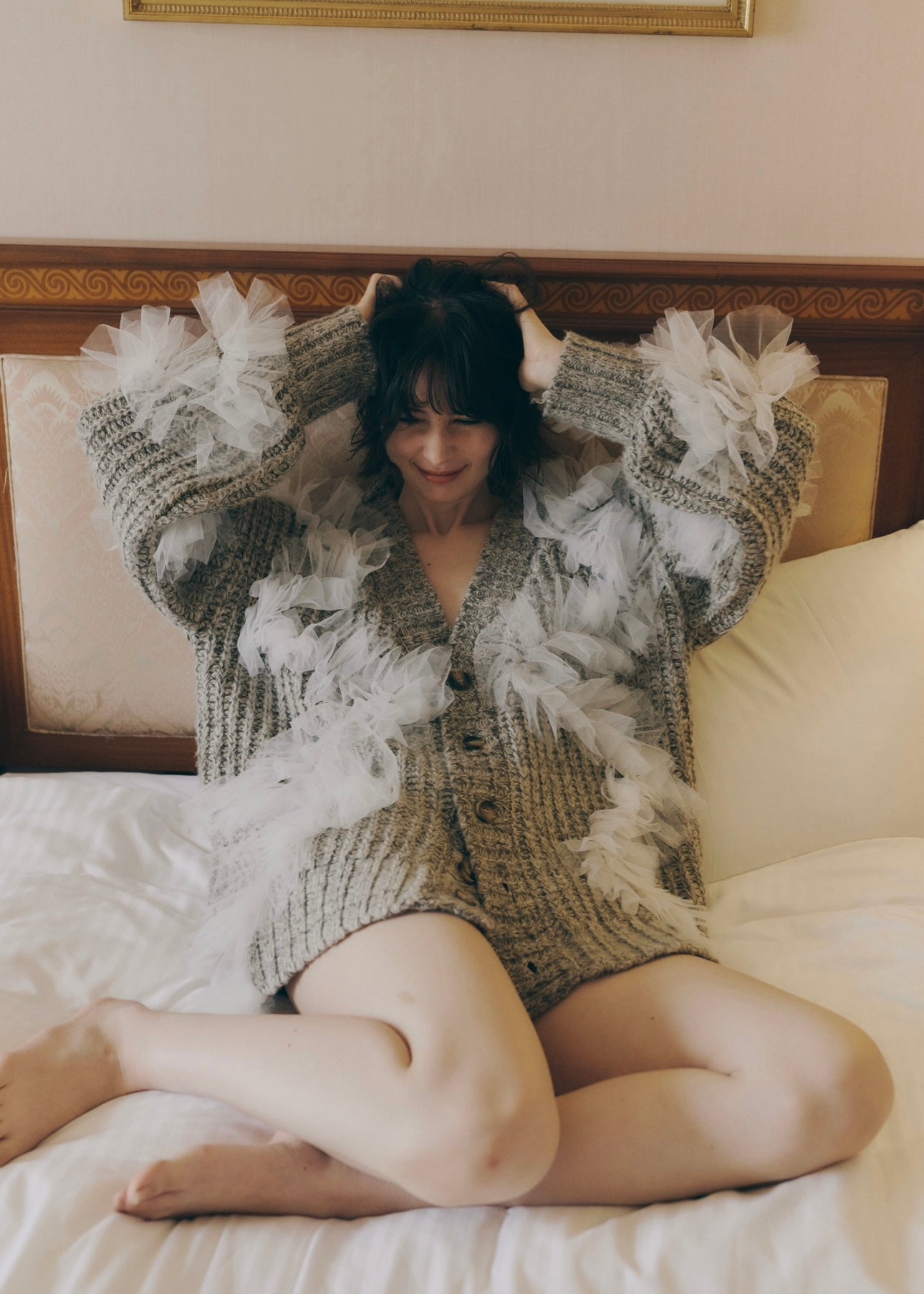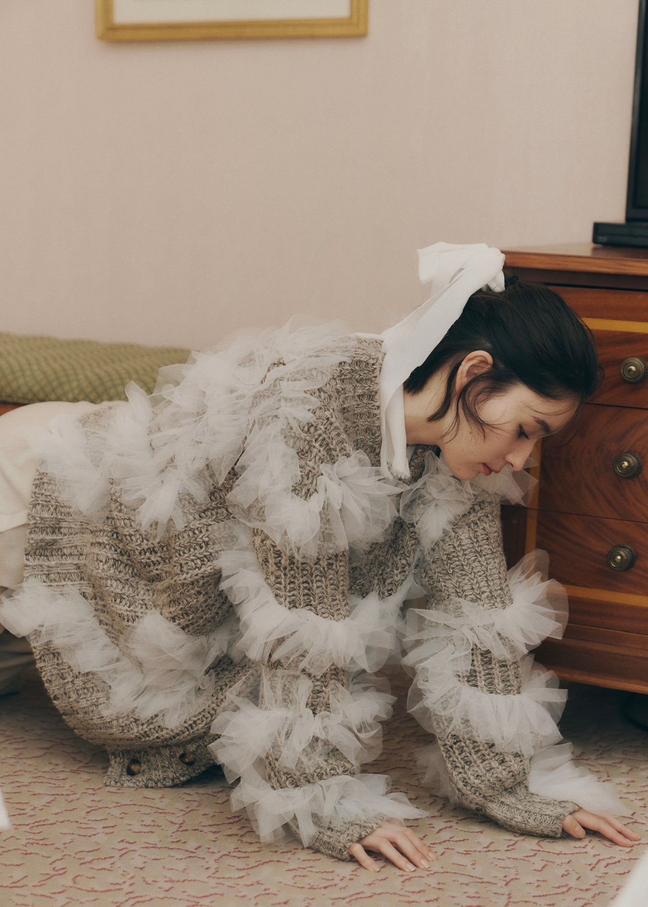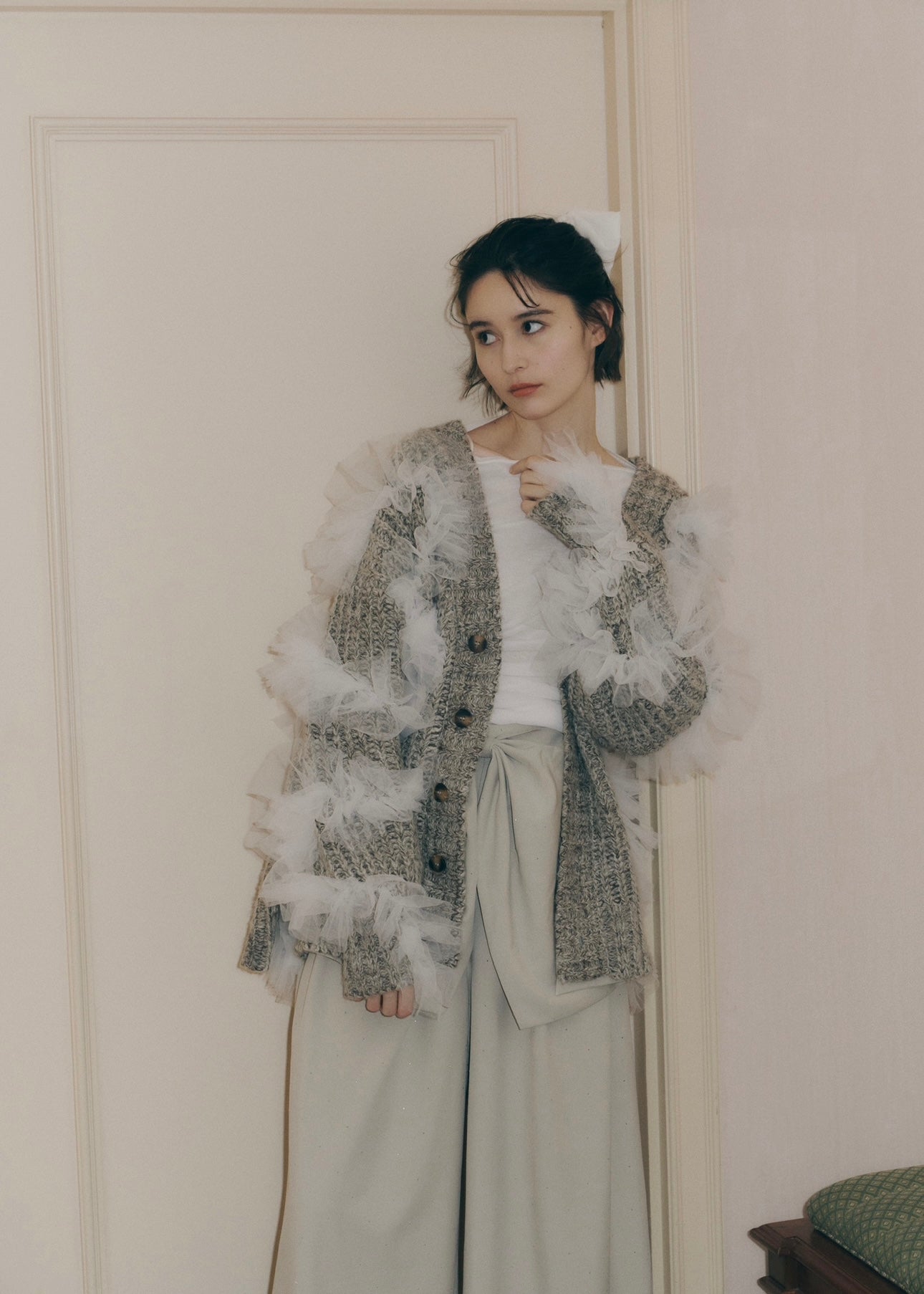 羽のように柔らかく揺れるチュールをあしらった