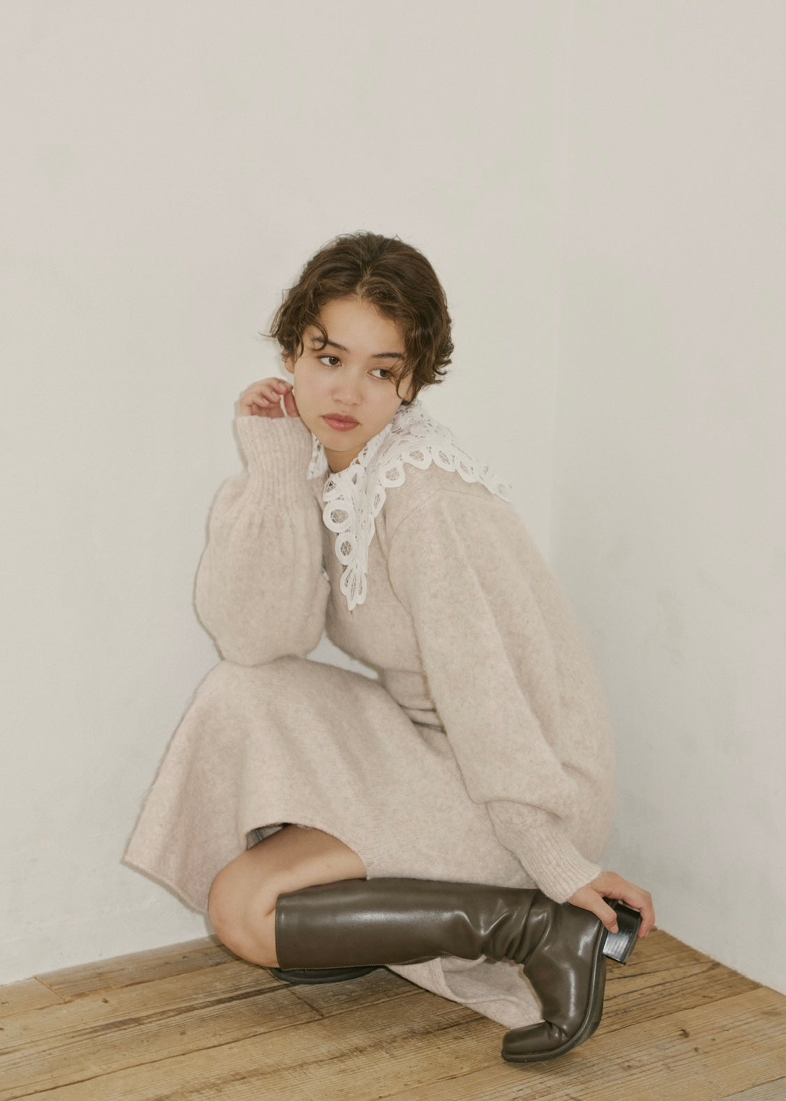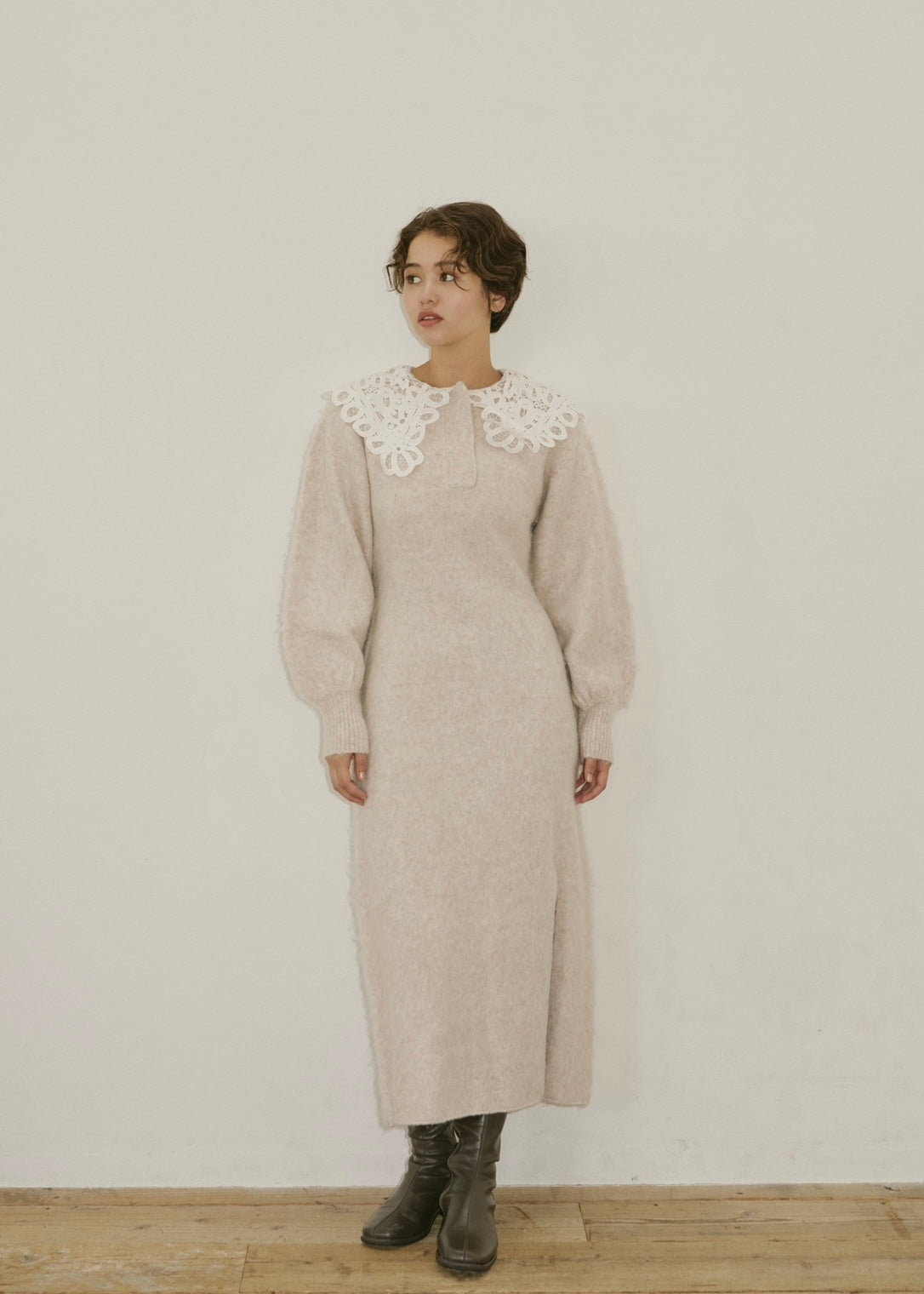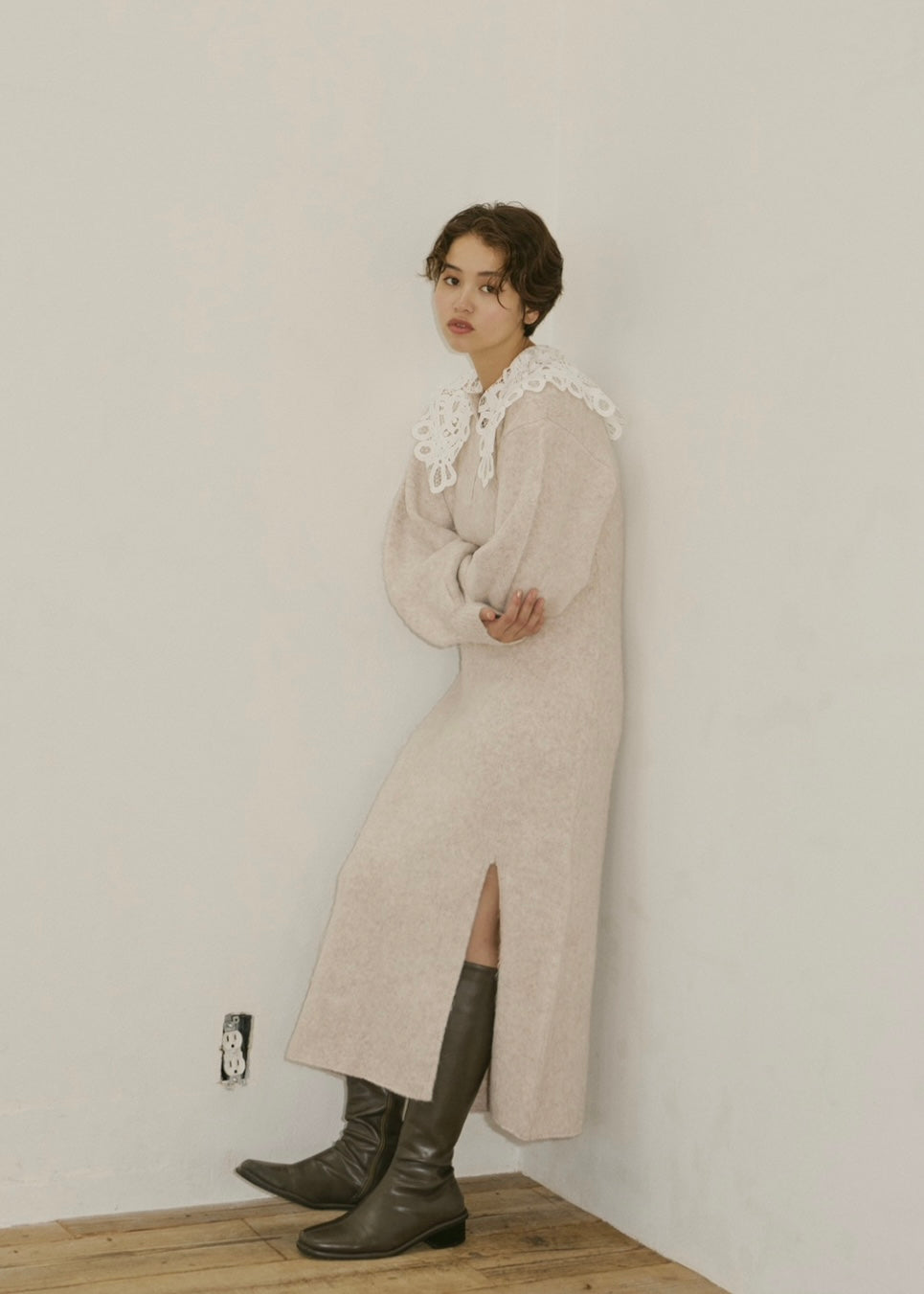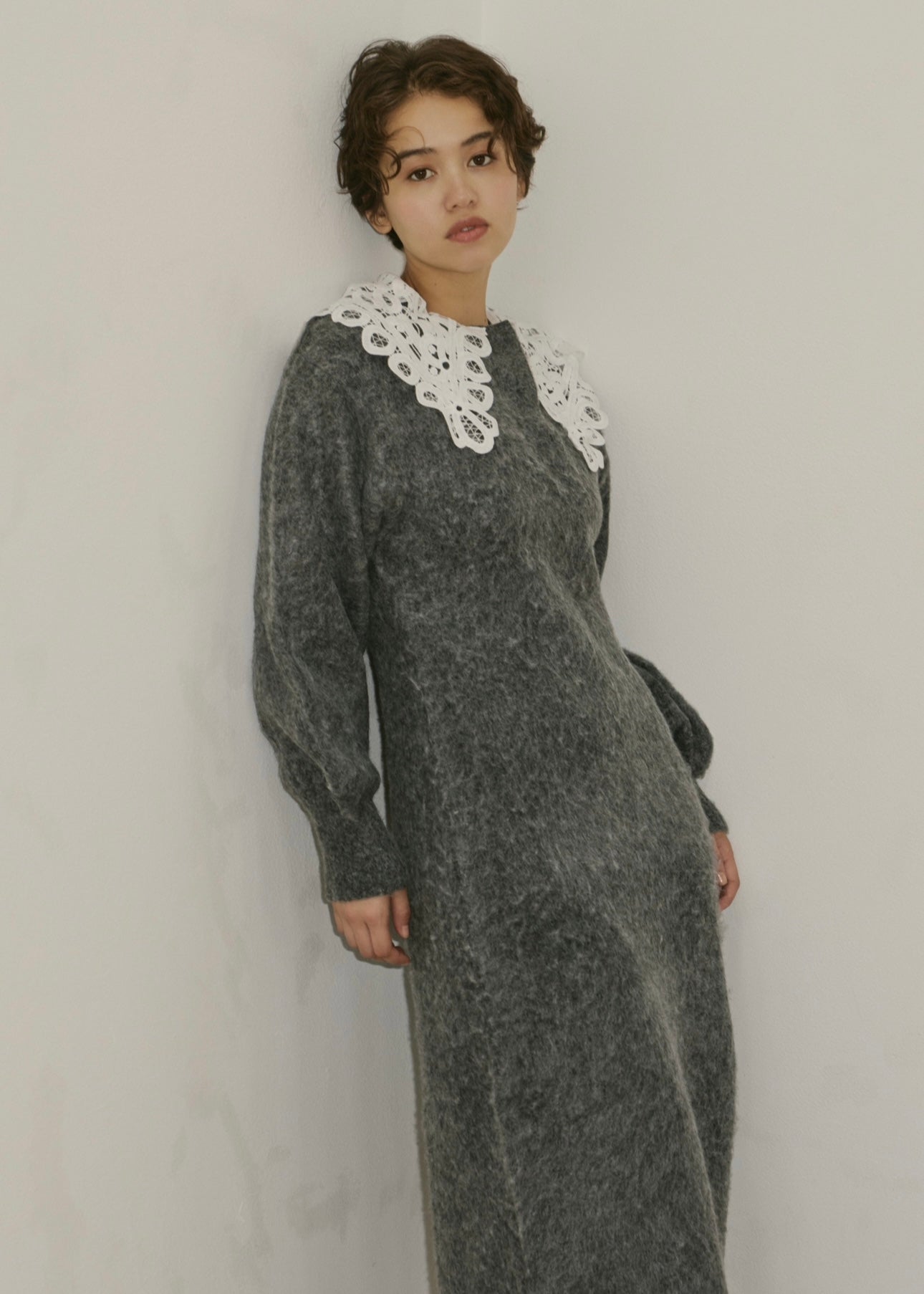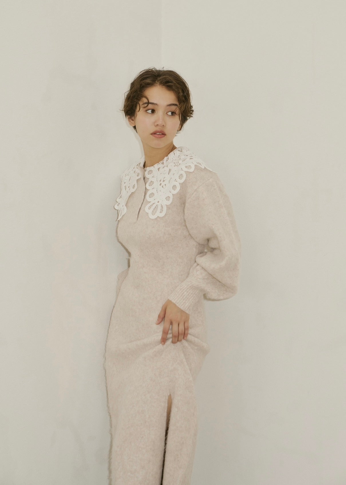 24awにてご好評いただいた、"lace design knit long one-piece"がより柔らかな生地に変わり、さらに新色を加えてリバイバル。