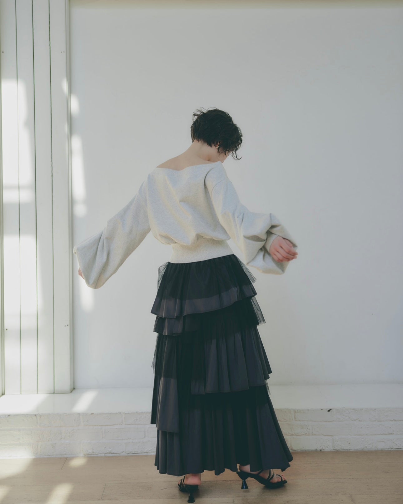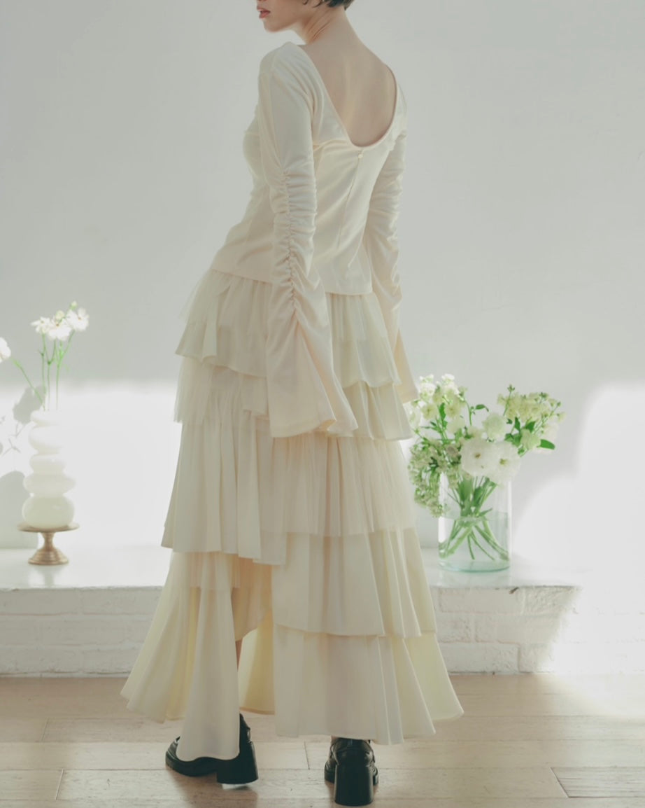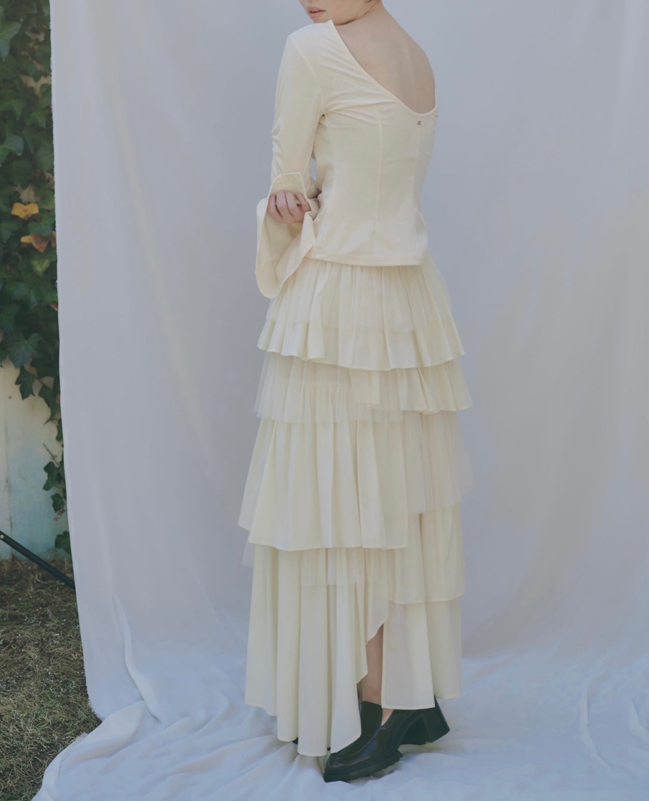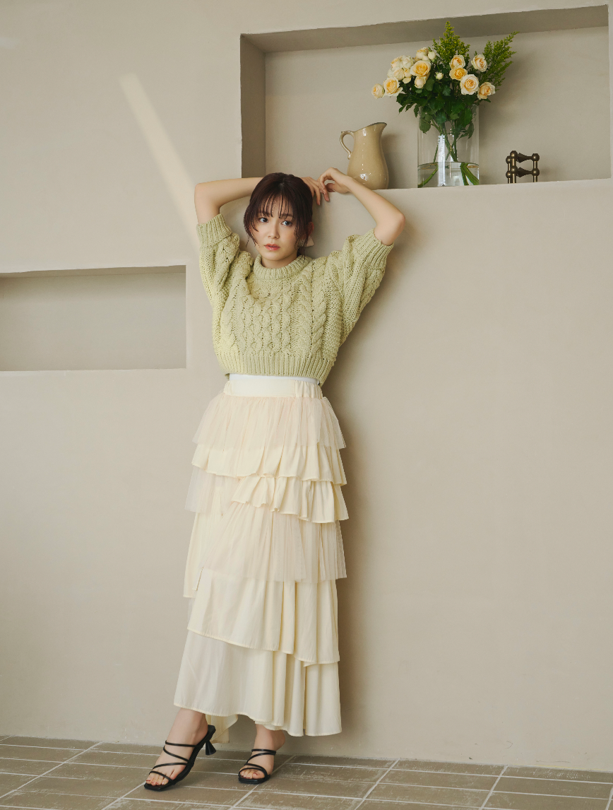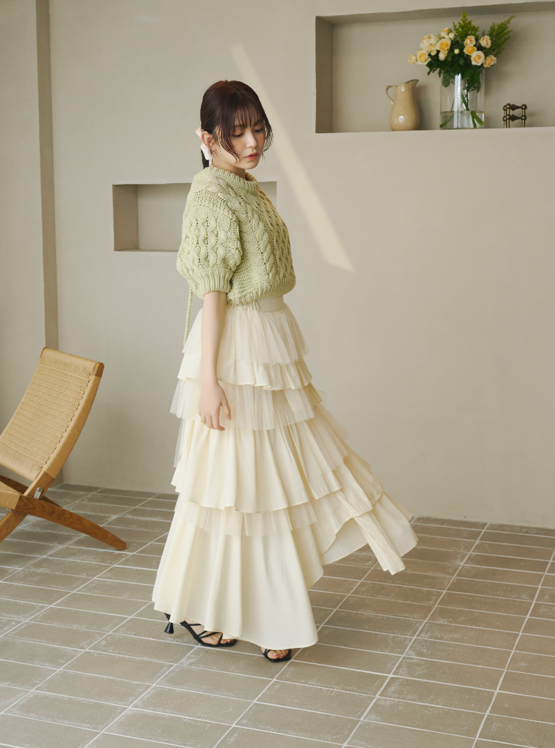軽やかに揺れるチュール素材と、