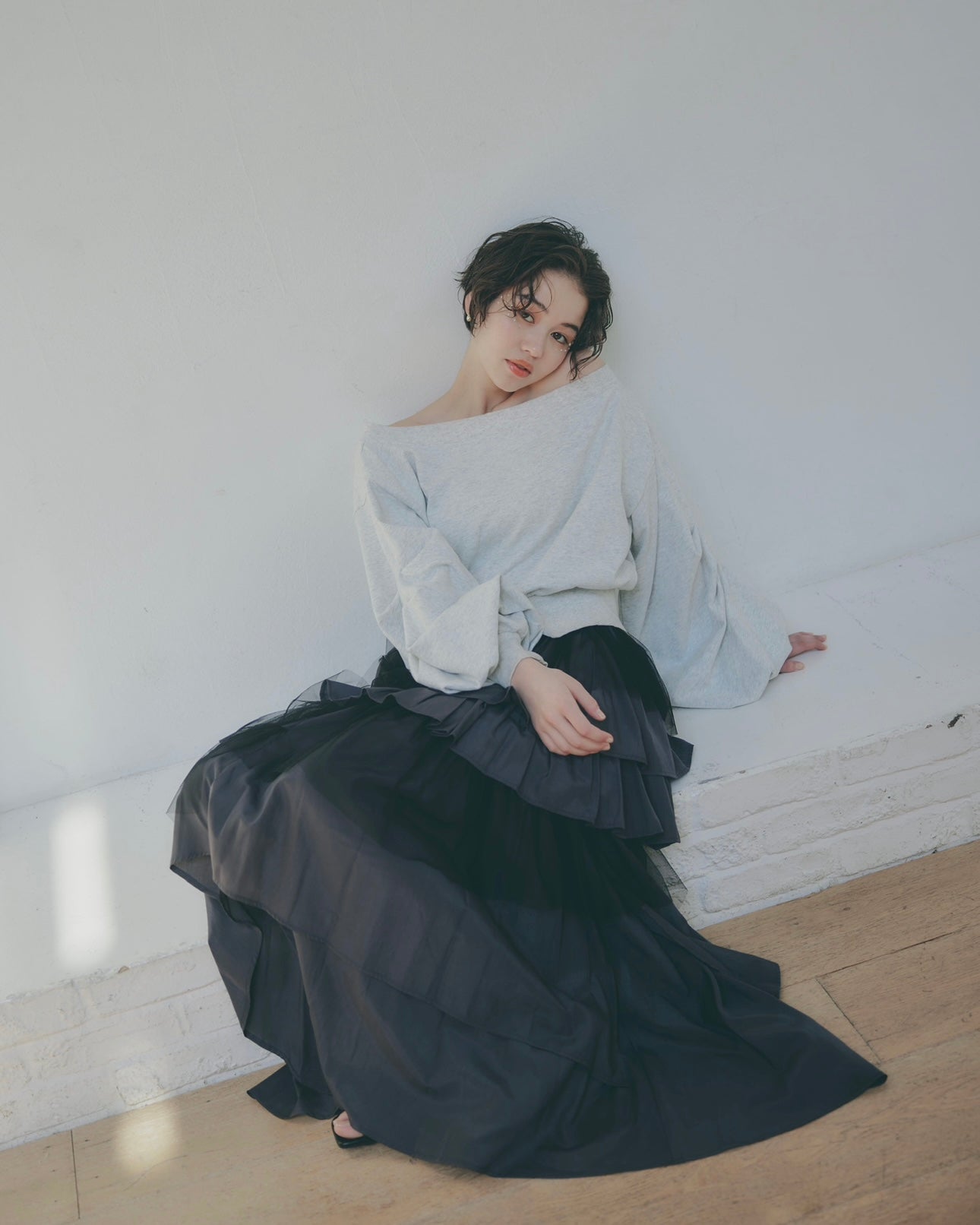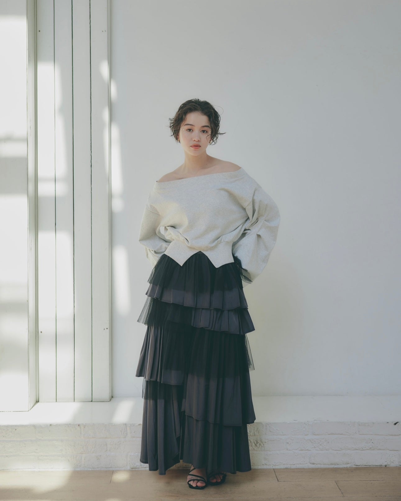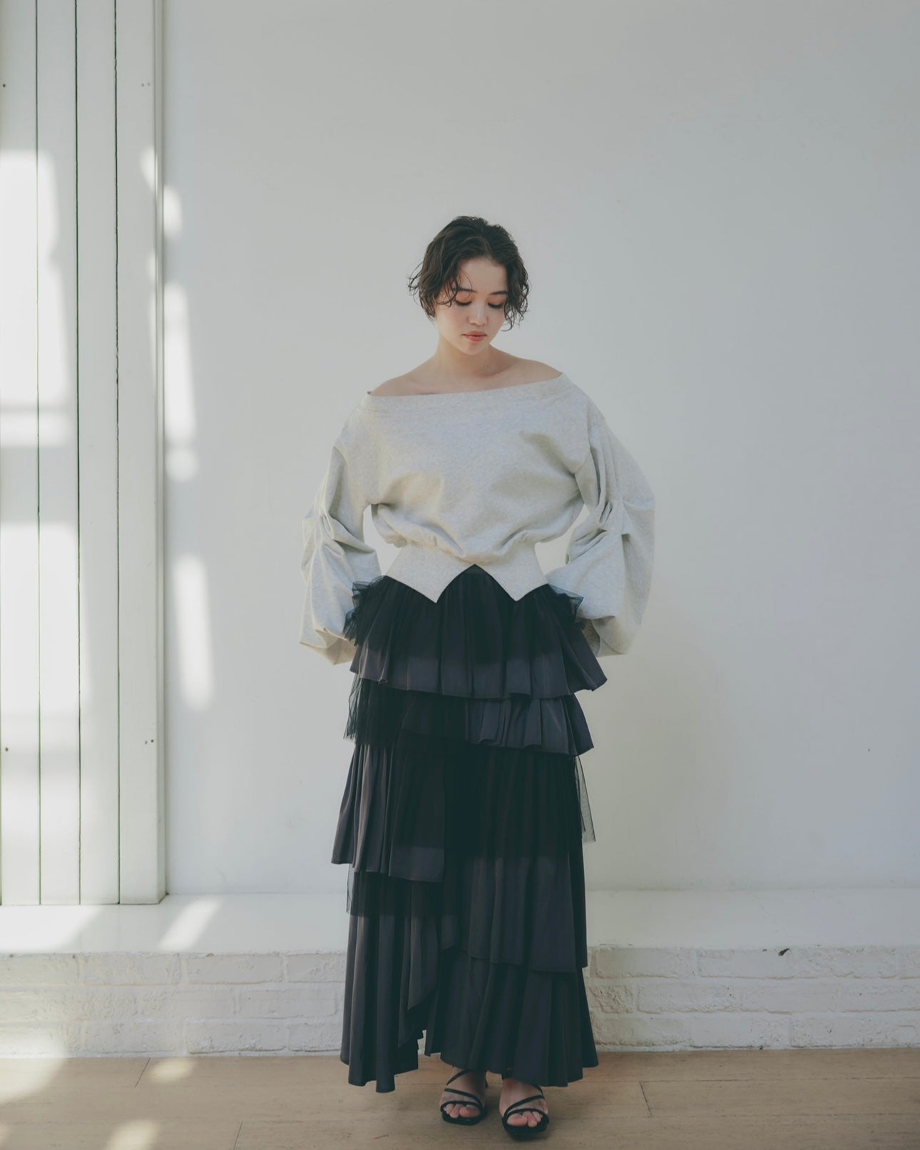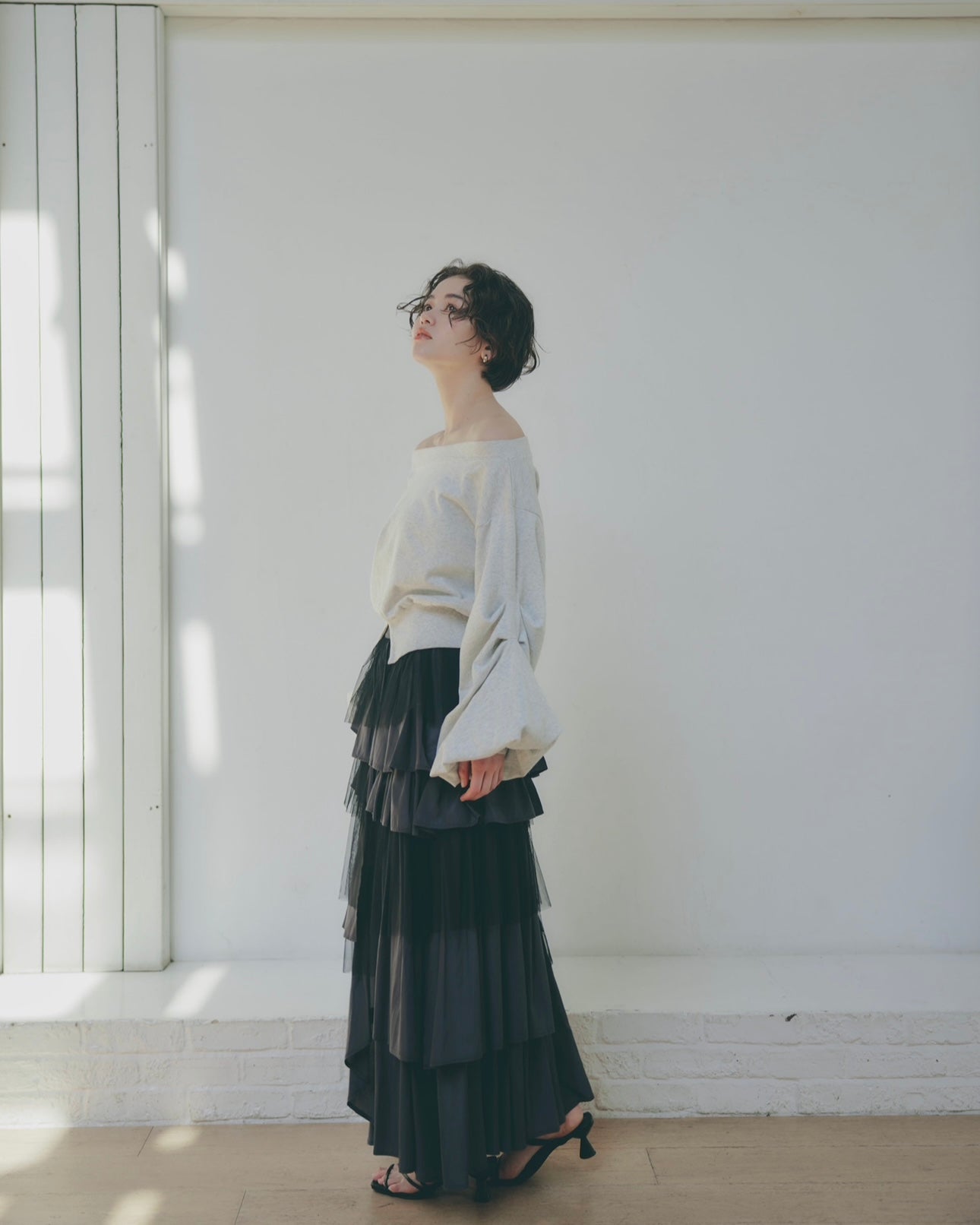 軽やかに揺れるチュール素材と、