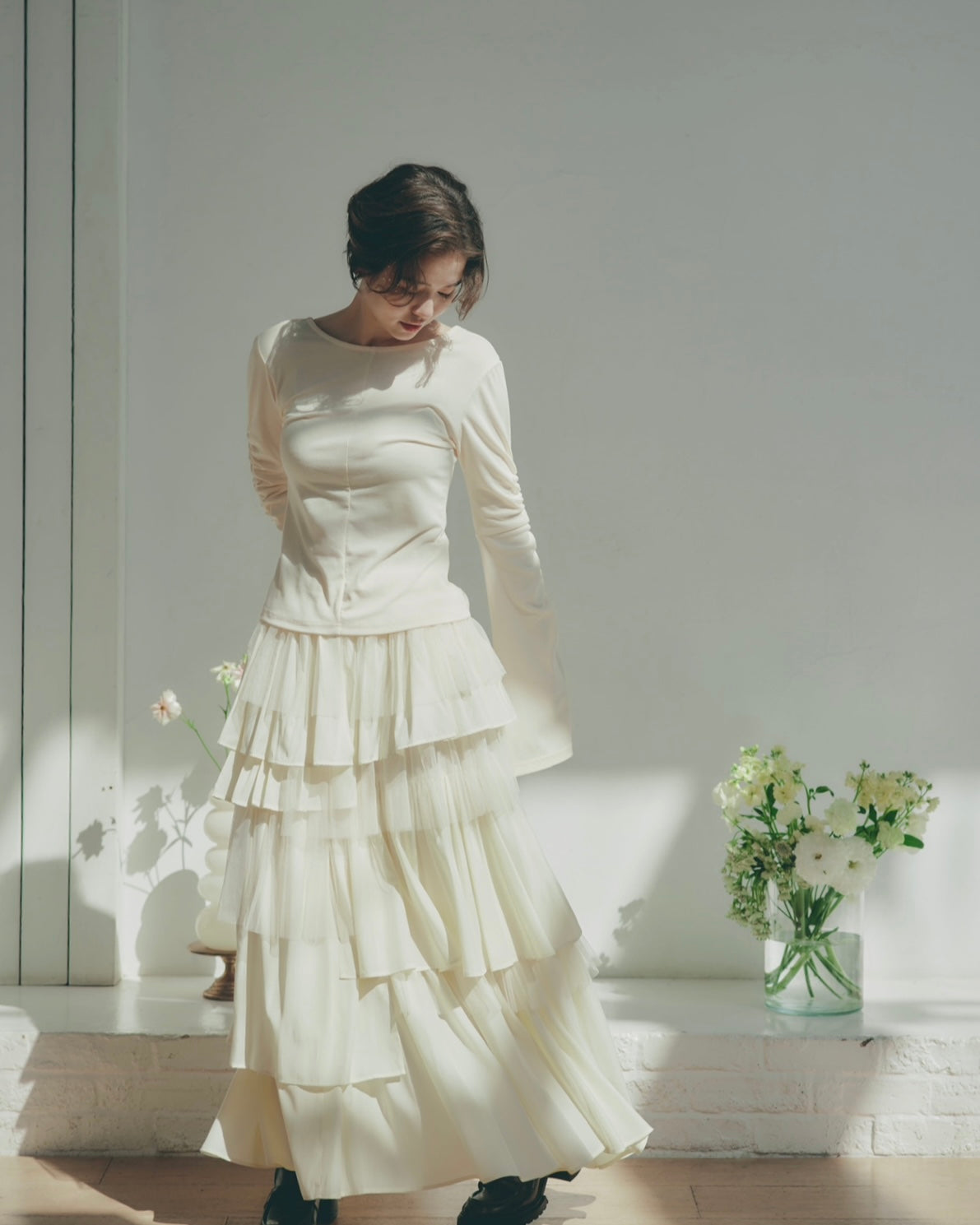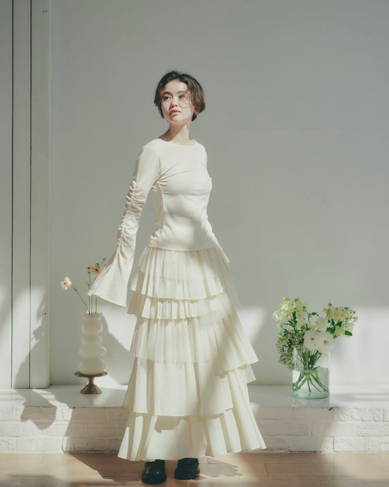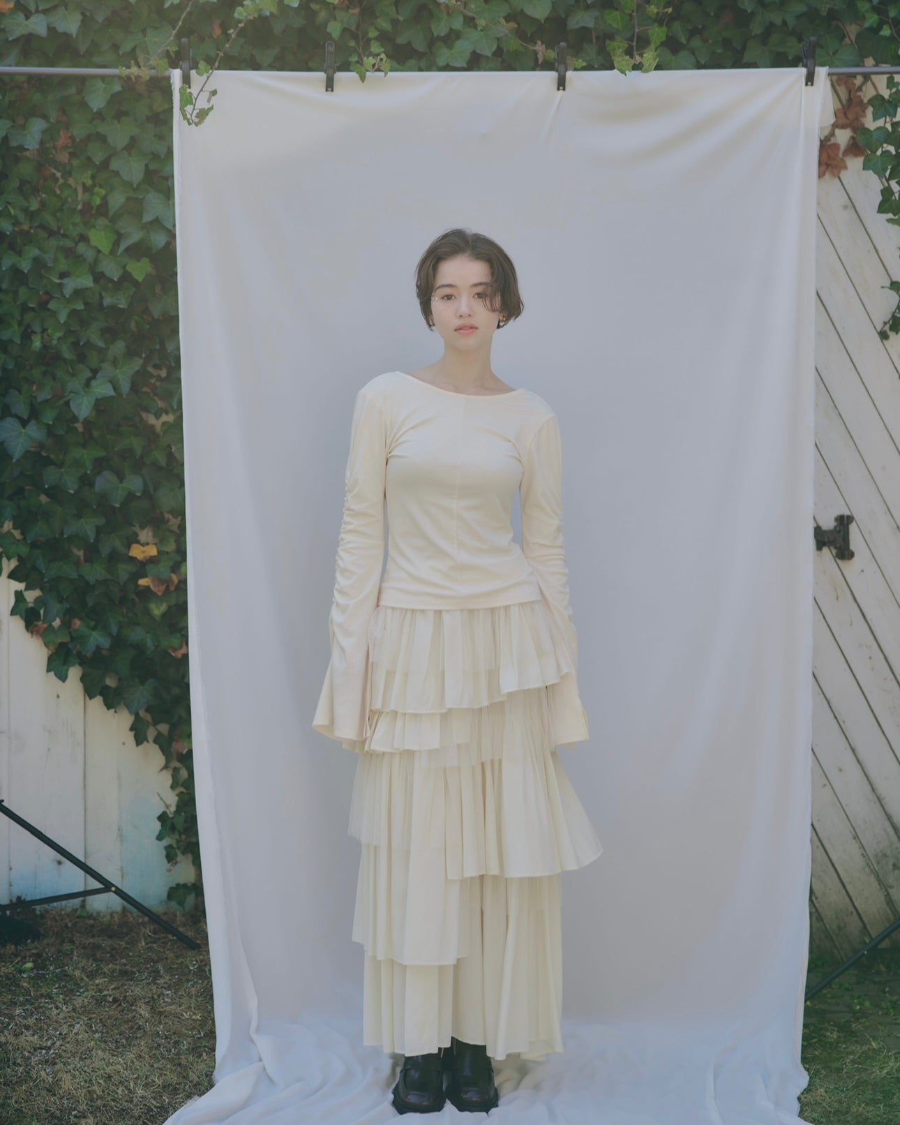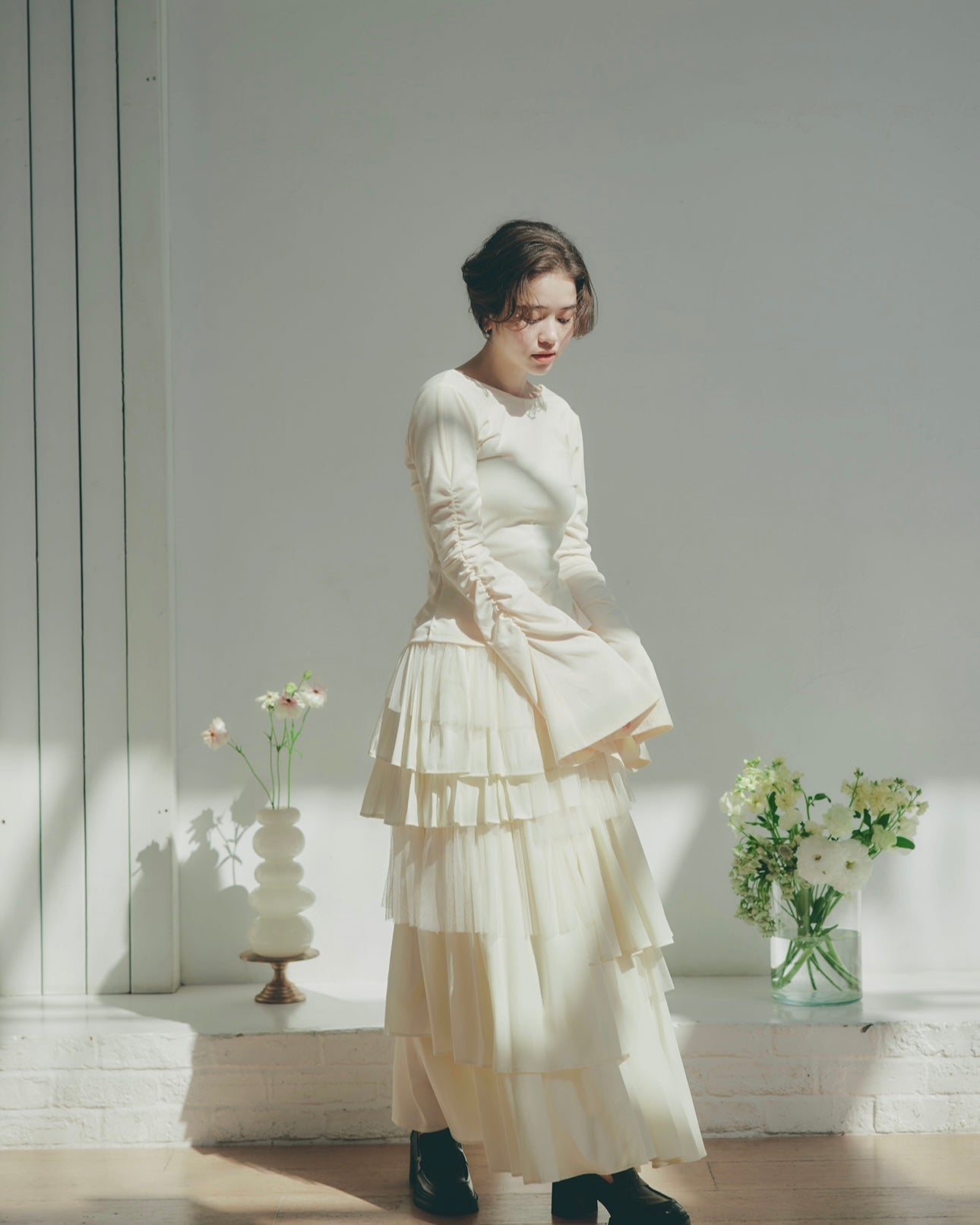 軽やかに揺れるチュール素材と、