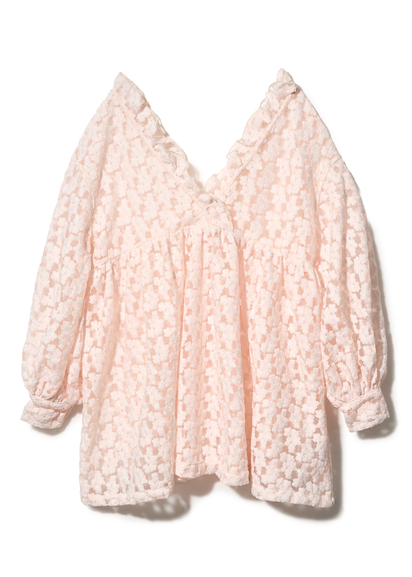 繊細なフラワージャガードが、やさしく肌に溶け込むミニドレス。