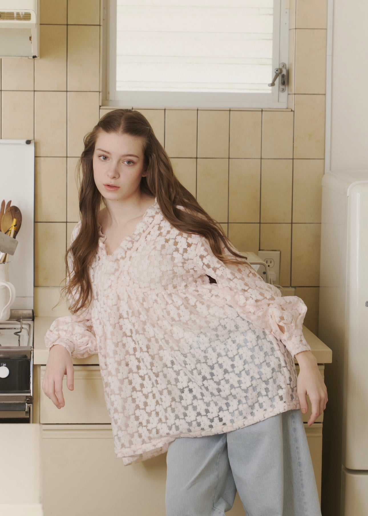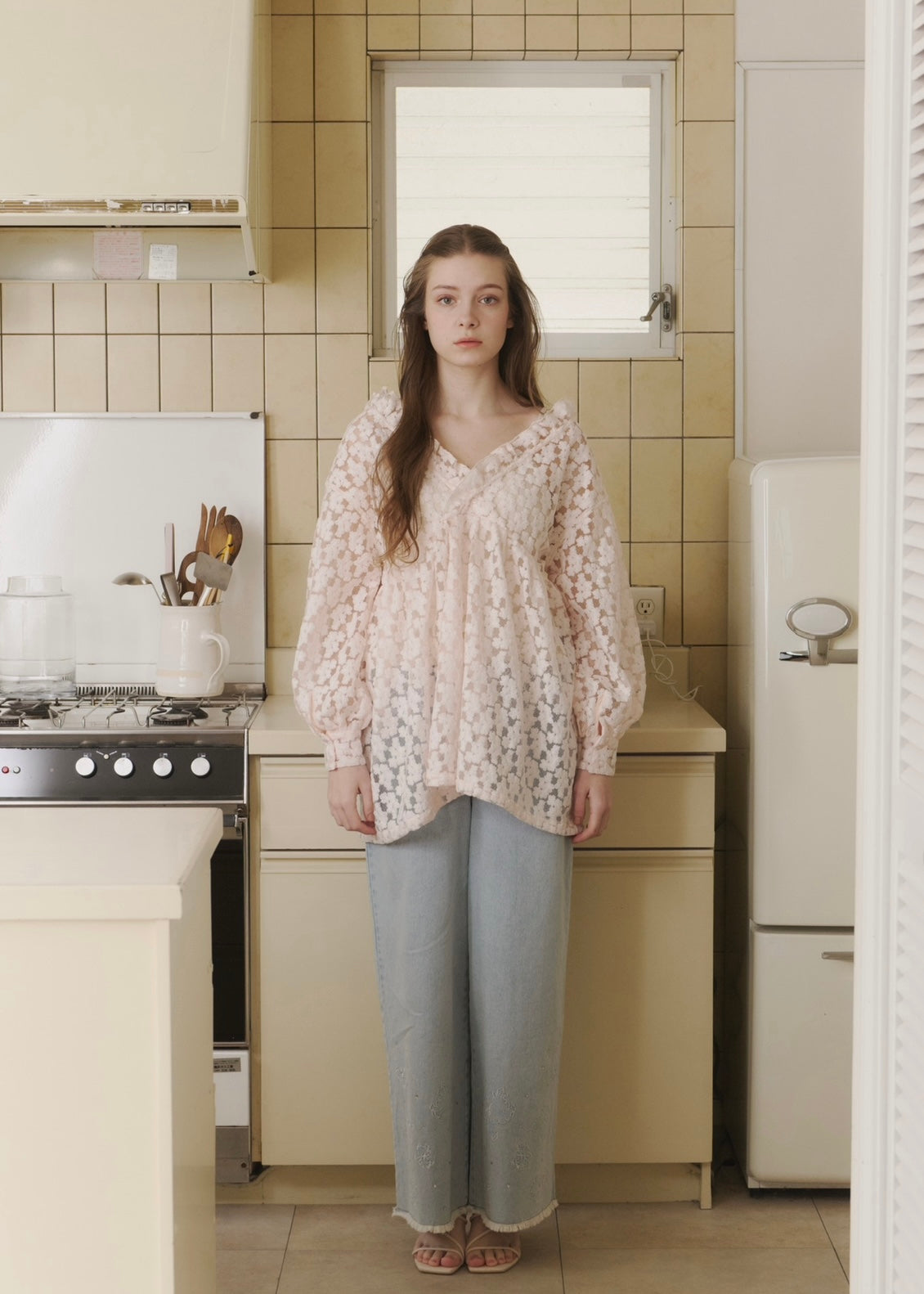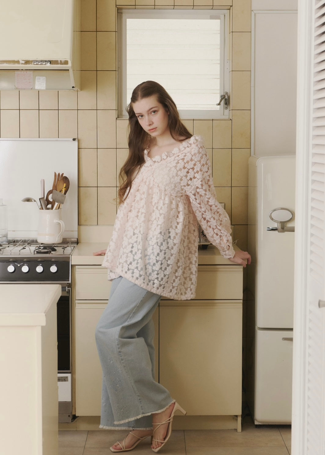 ほんのり透ける軽やかな素材感が、女性らしさを引き立ててくれます。