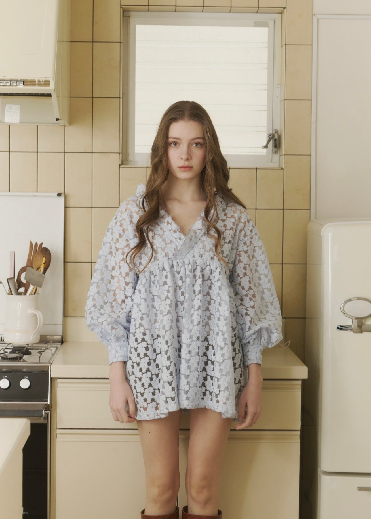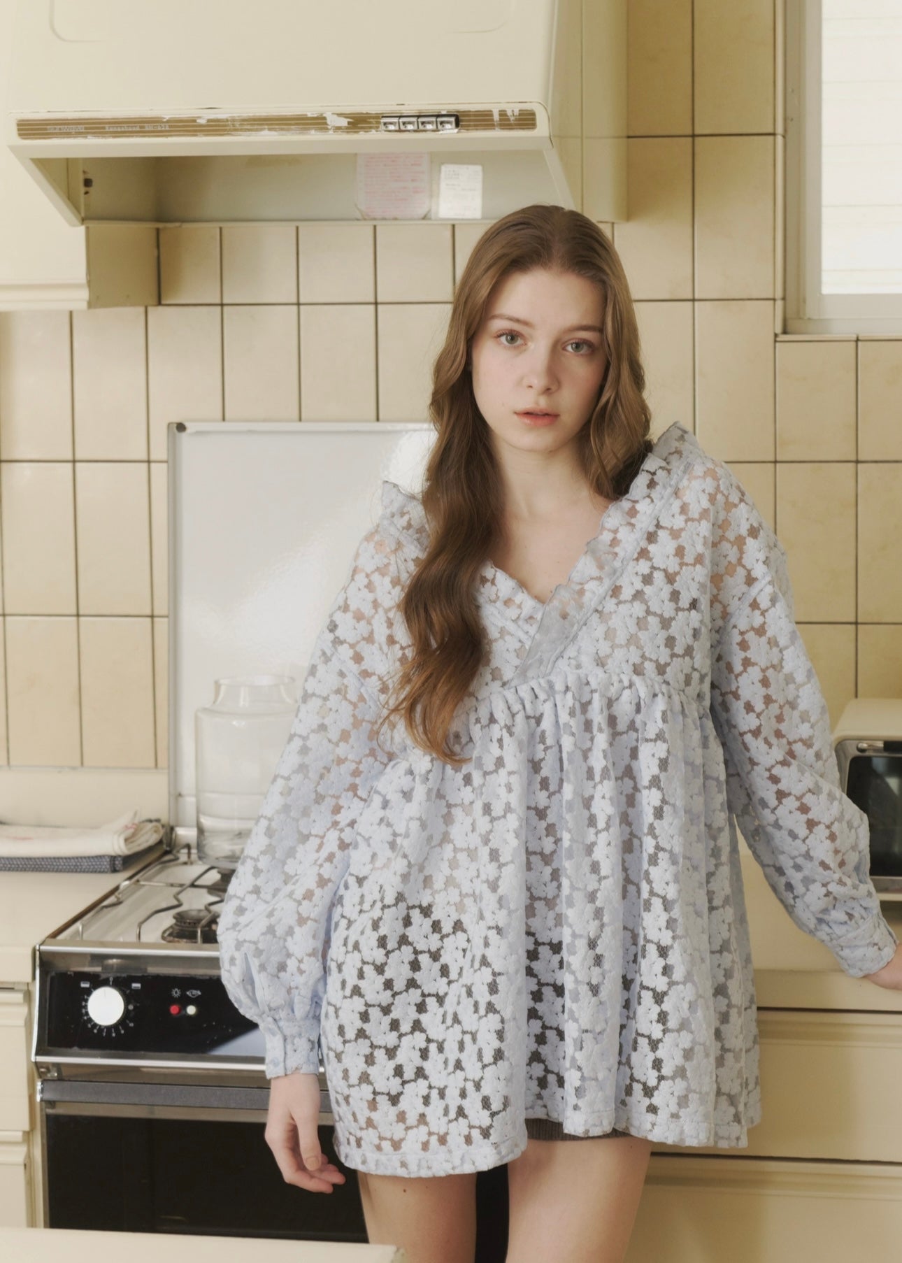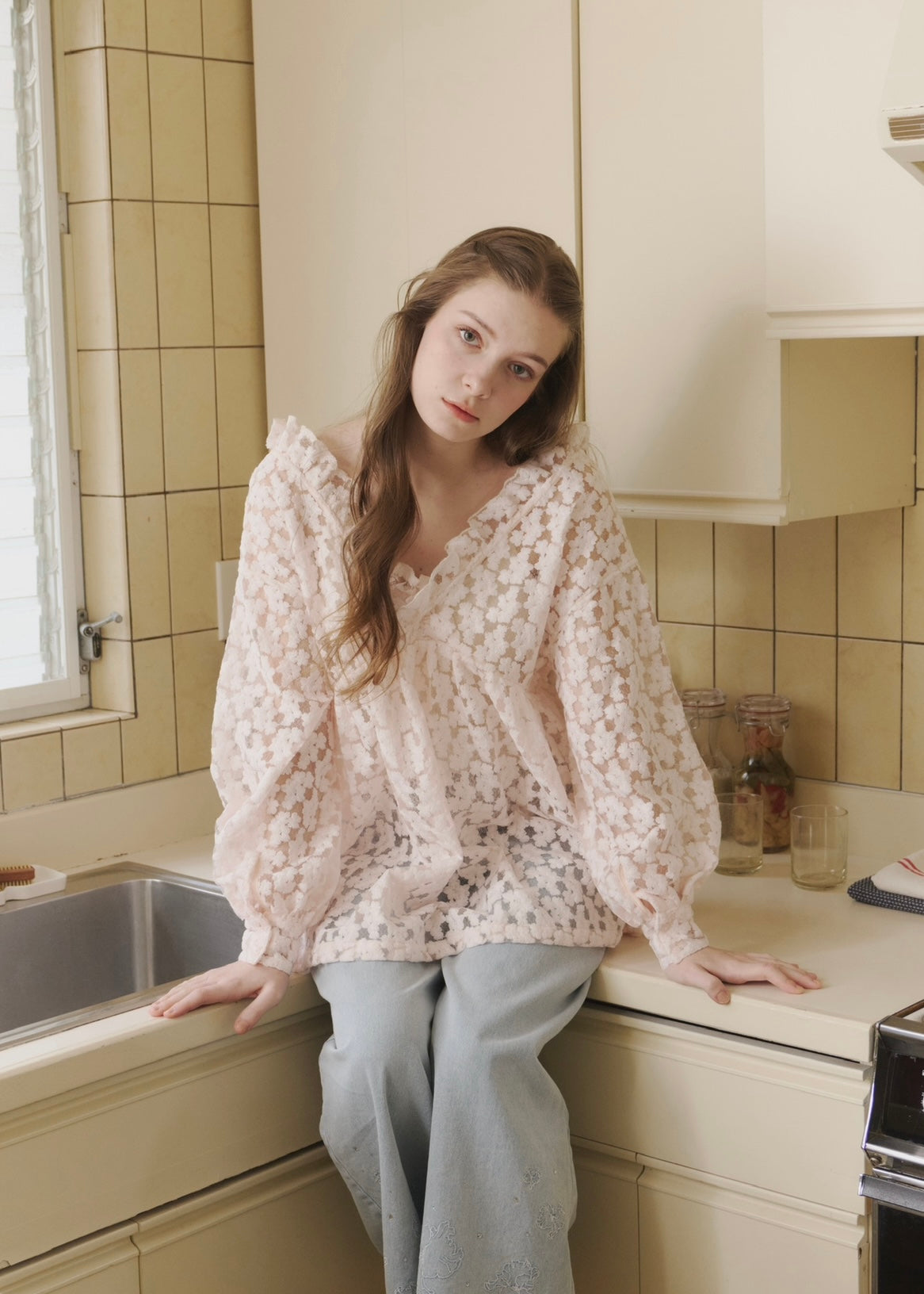 ほんのり透ける軽やかな素材感が、女性らしさを引き立ててくれます。